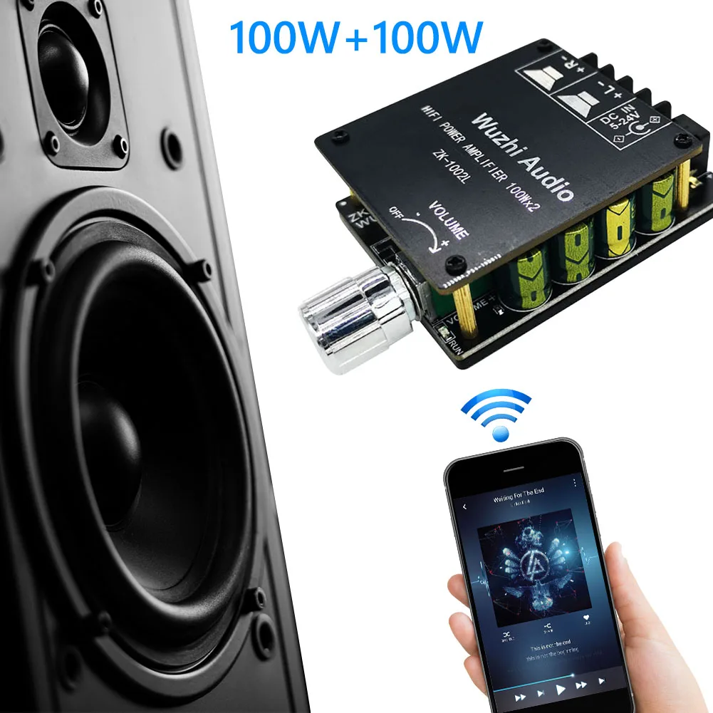 ZK-1002L 2x100 Вт мини двухканальный динамик цифровой усилитель мощности плата беспроводной аудио стерео Bluetooth-совместимый 5,0 ампер