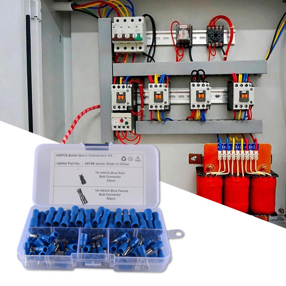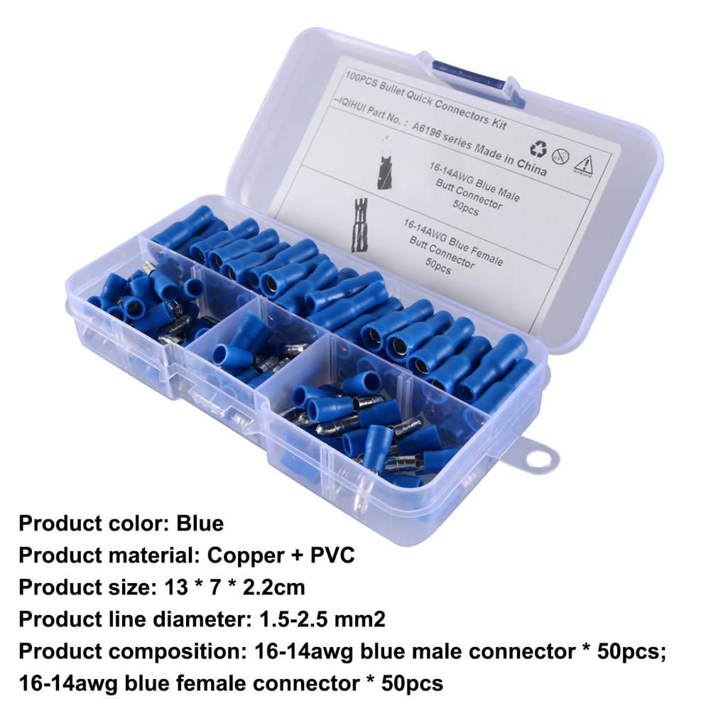 100 шт./компл. 16-14 AWG проводка терминал Отличная проводимость Медь Синий Мужской Женский обжимной разъем для автоматического оборудования