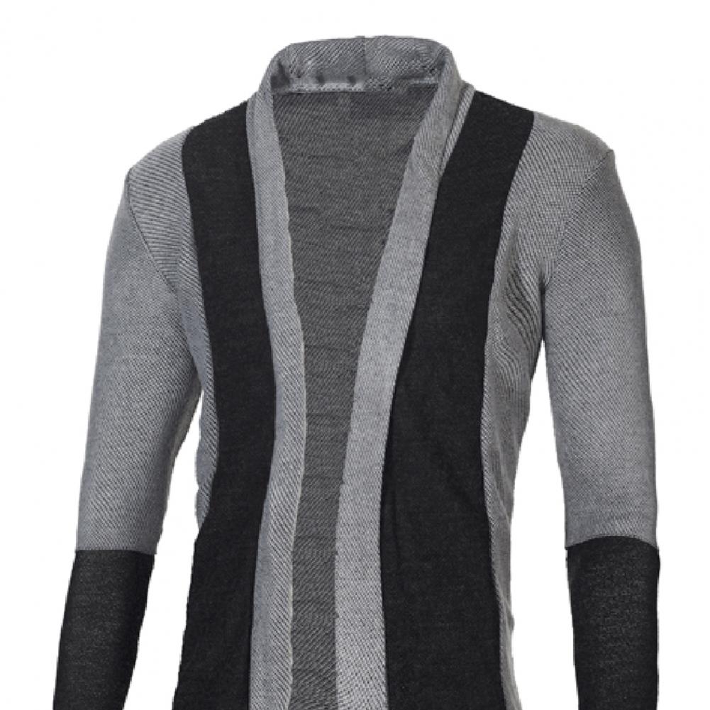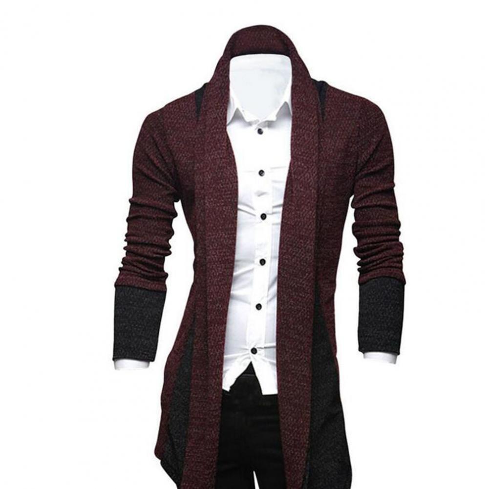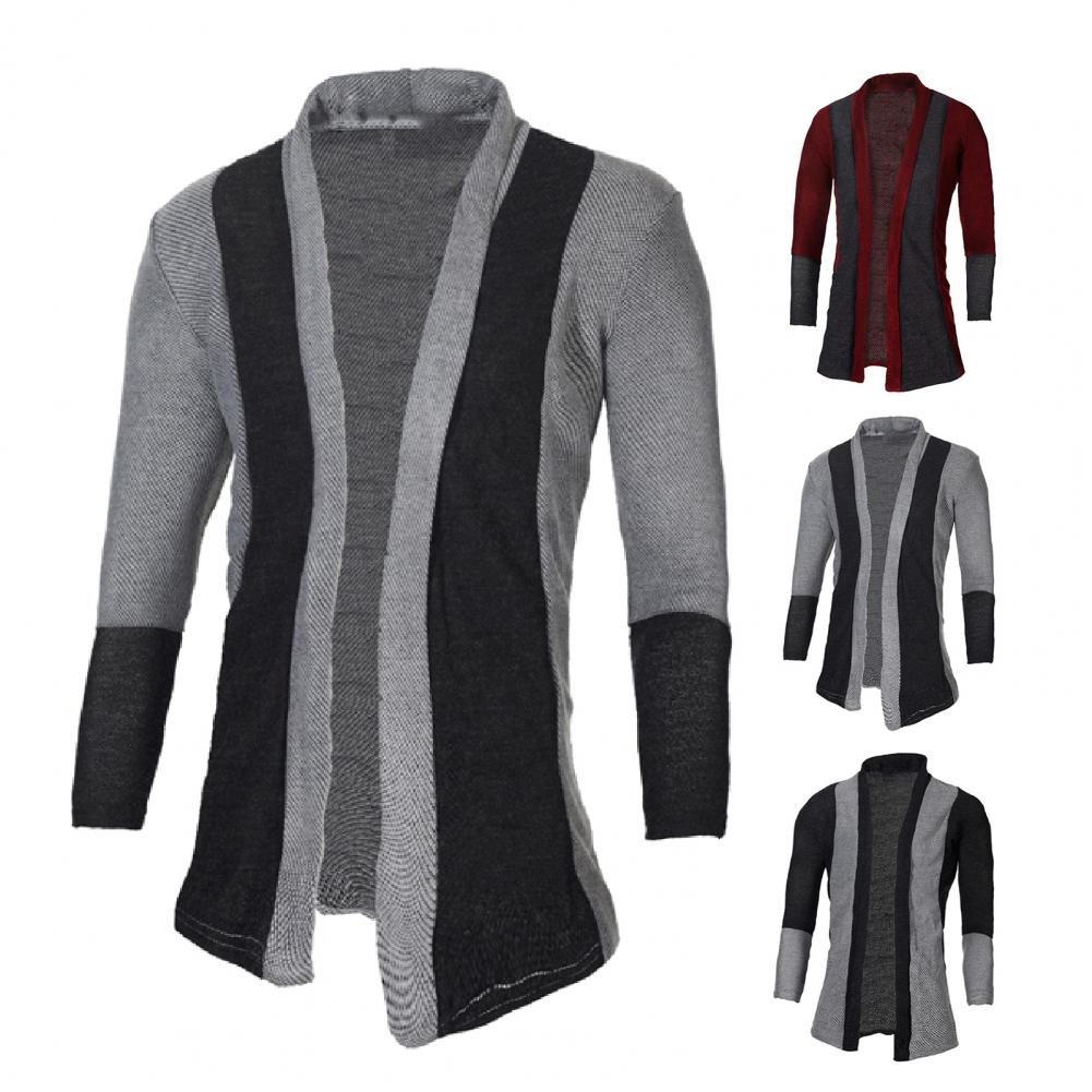 Мужской кардиган в стиле пэчворк с длинными рукавами, модный и шикарный. В этом мужском кардигане с открытым передом вы легко Носите и снимаете.