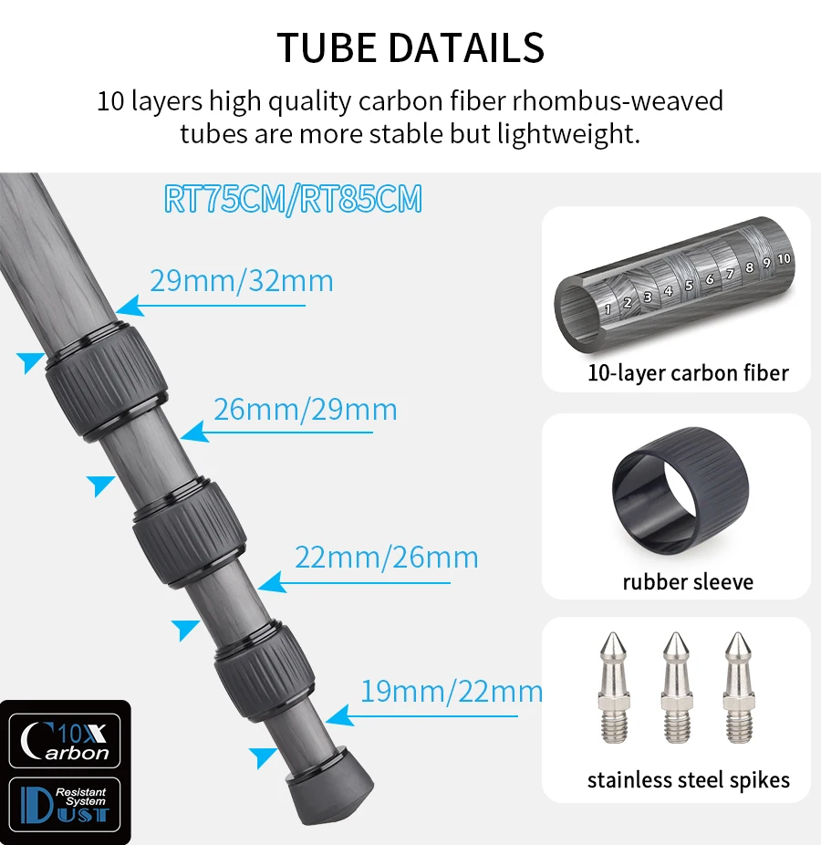 [Легкий и прочный] Этот штатив изготовлен из металла и 10-слойного углеродного волокна с технологией ЧПУ и анодным окислением, который легкий, надежный и для длительной работы или игровых сессий.