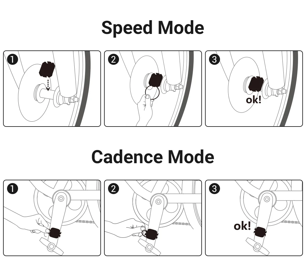 * Датчик скорости или Каденции-легко переключать режим между скоростью и каденцией. Просто сбросить батарею, синий светильник указывает на датчик кадра и красный светильник блокирует датчик скорости. Обратите внимание, что это не может отслеживать скорость и кадрирование одновременно.