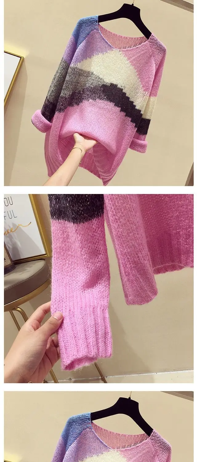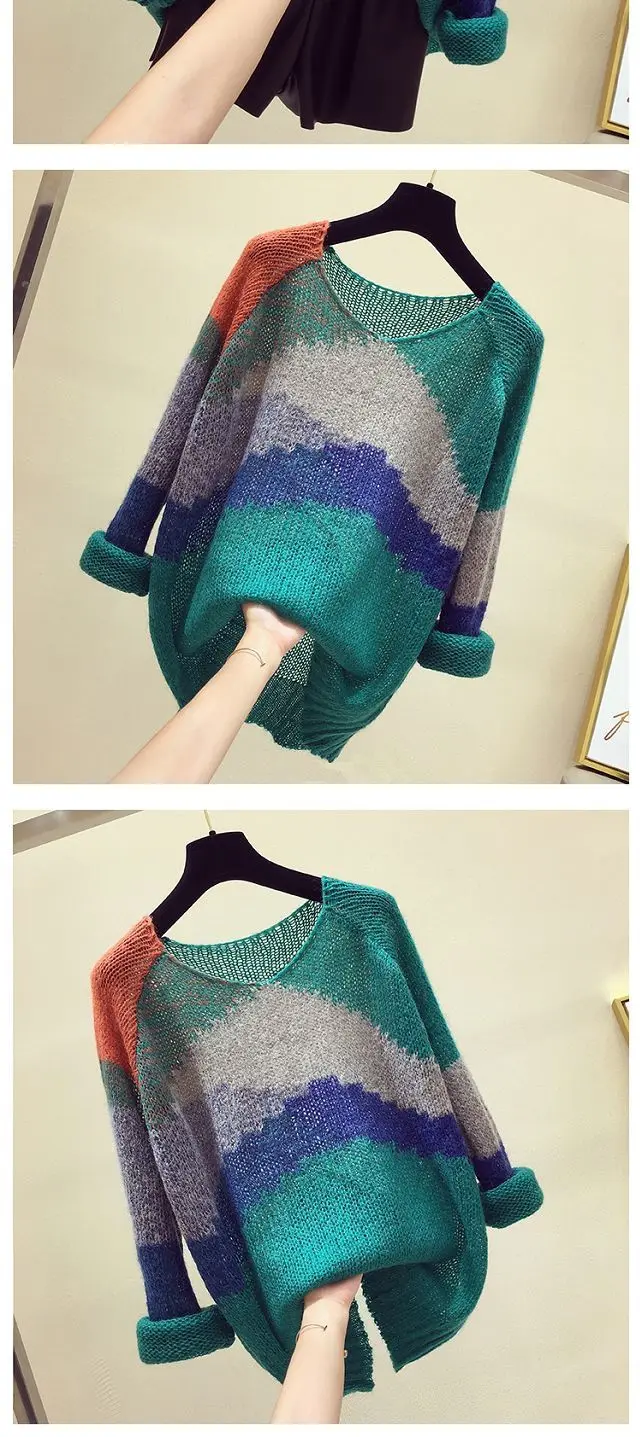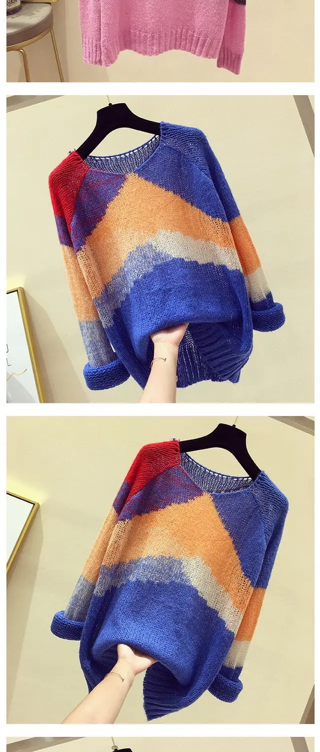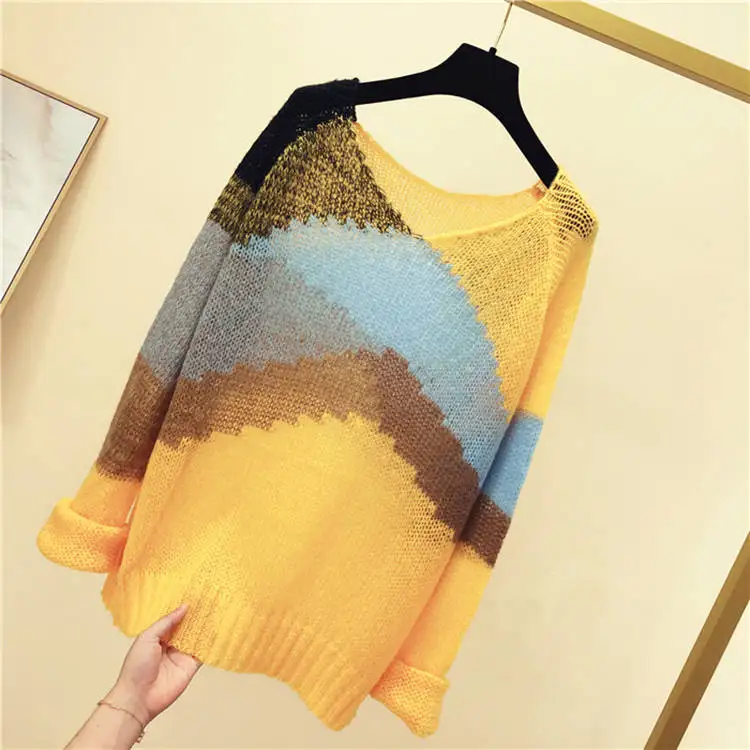 Женский трикотажный пуловер 2021 весна и осень Новый тонкий свитер с длинным рукавом Свободная лангид ленивый ветер блузка шикарная блузка
