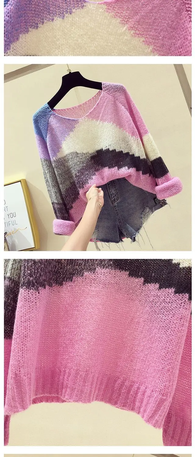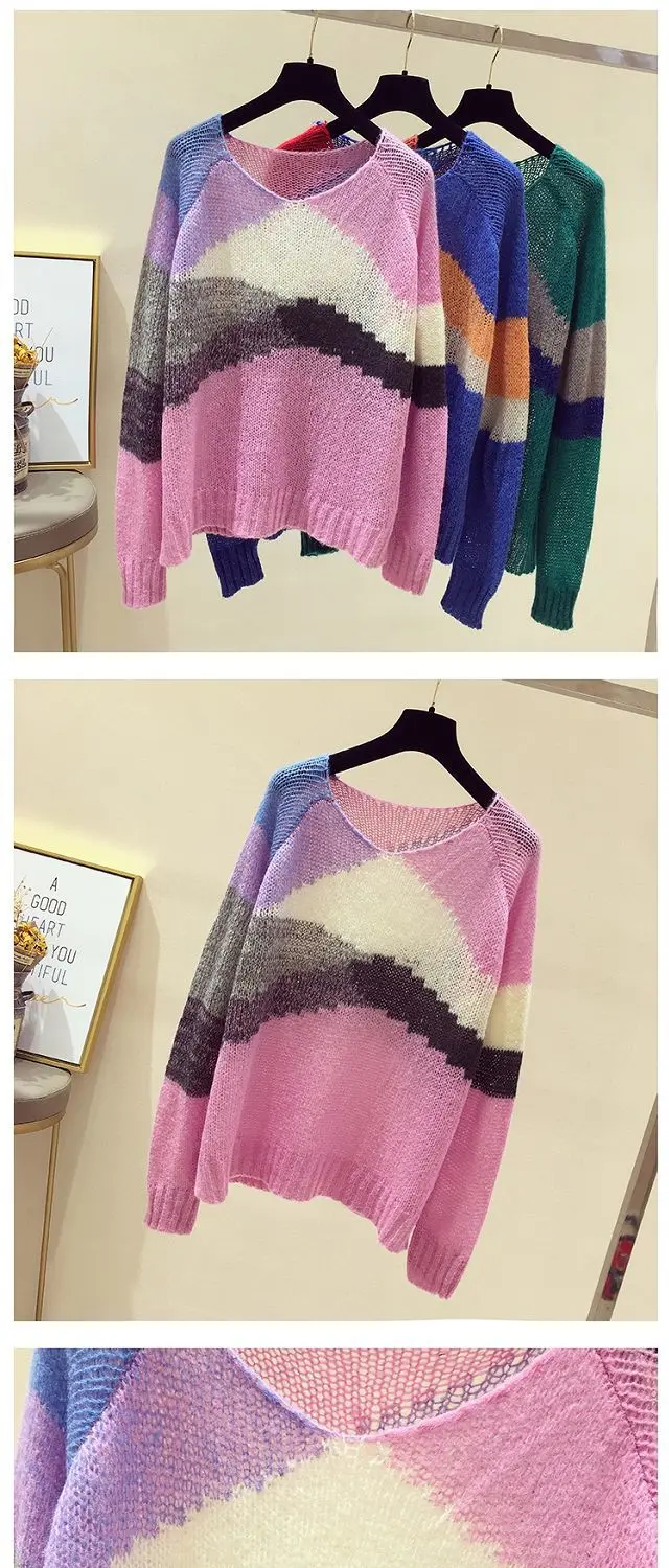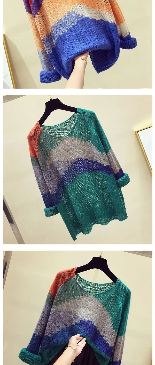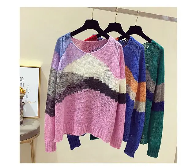 Женский трикотажный пуловер 2021 весна и осень Новый тонкий свитер с длинным рукавом Свободная лангид ленивый ветер блузка шикарная блузка