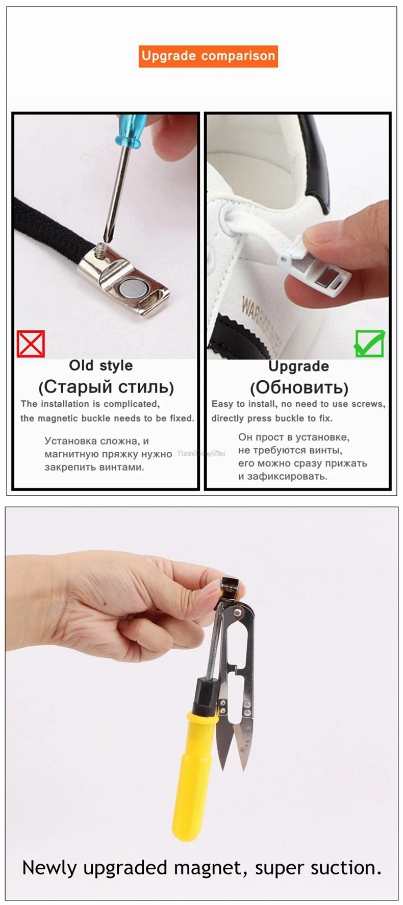 Научный дизайн: обновленная версия, шнурки без галстука имеют уникальную изогнутую магнитную пряжку и плоская эластичная веревка. Конструкция с двойным замком на магнитной застежке позволяет вам никогда не беспокоиться о том, что шнурки будут ослаблены; кружевные замки изогнуты и оснащены плоским тянущимся шнуром, который идеально сочетается с ногами, чтобы ваши ноги были удобны в течение всего дня.