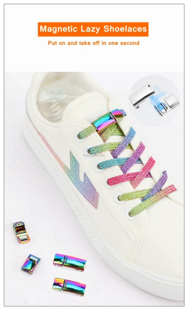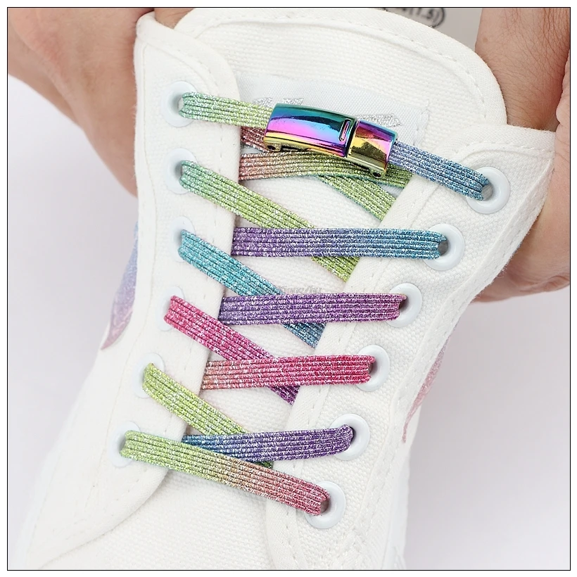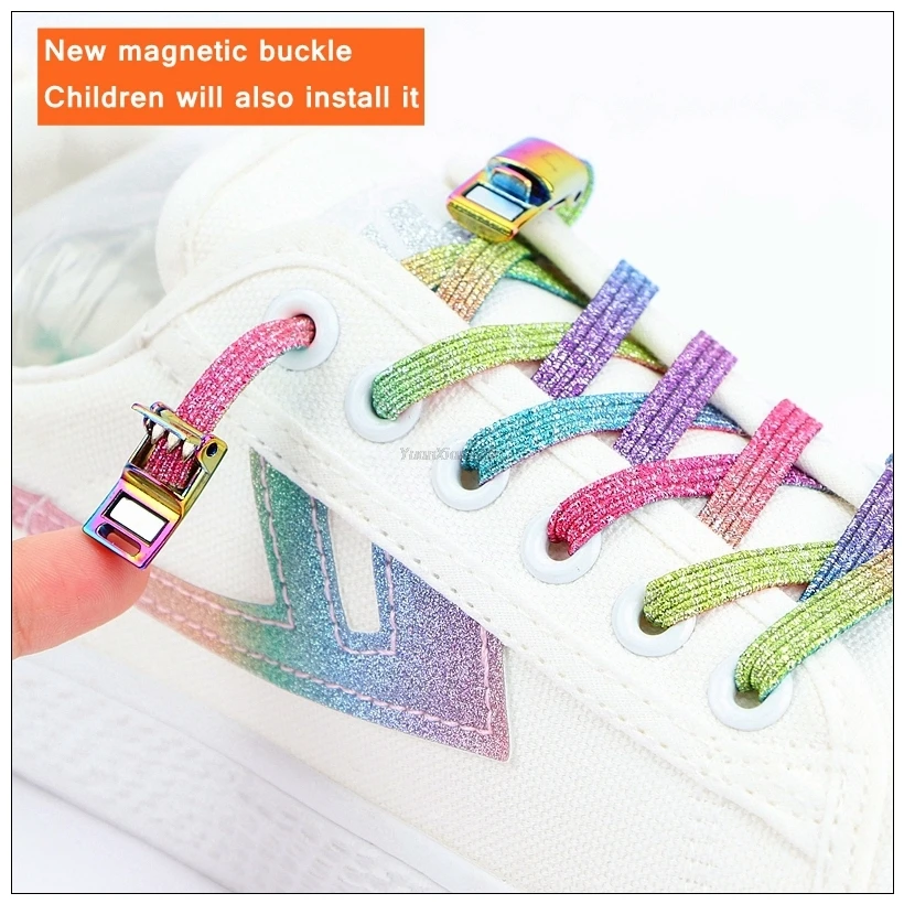 Радужные шнурки с магнитным замком для кроссовок, эластичные шнурки без галстуков для детей и взрослых, быстрая обувь, шнурки без шнурков, Резиновая лента