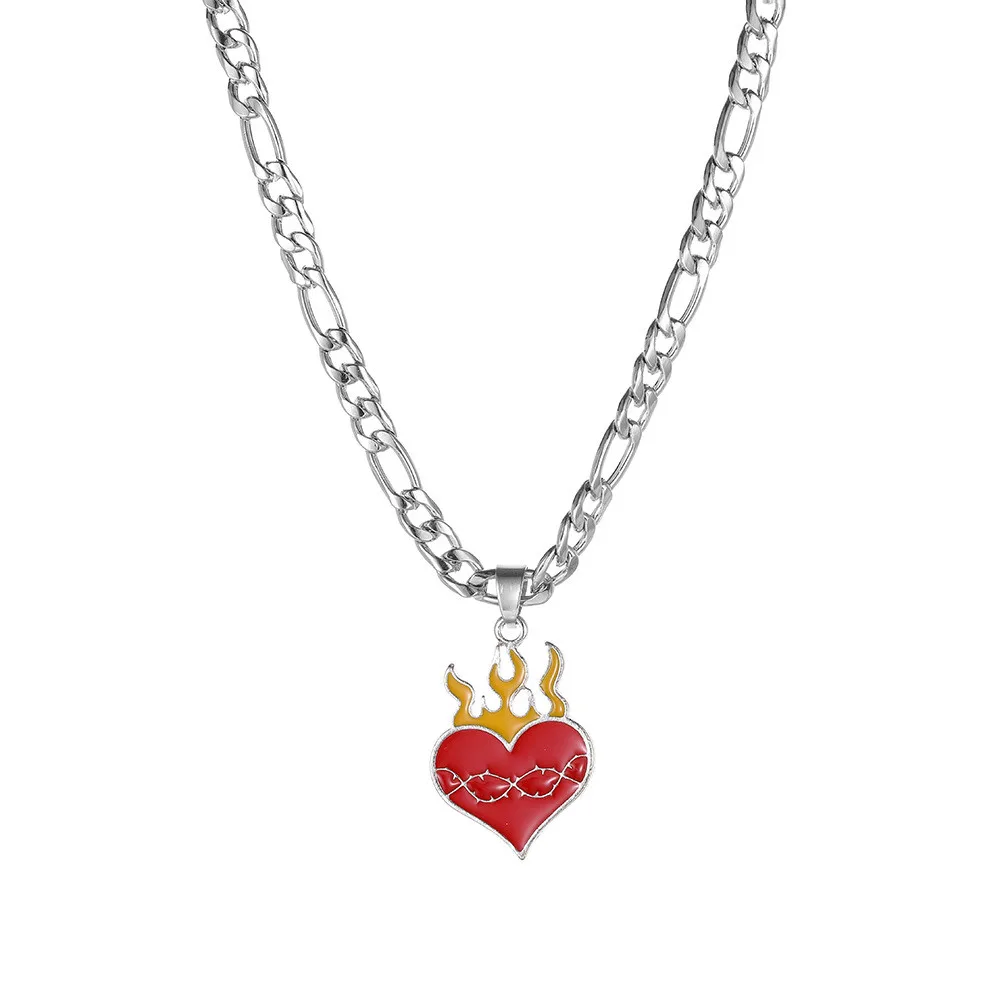 Корона Тай Чи письмо пламя сердце кулон сплав ожерелье