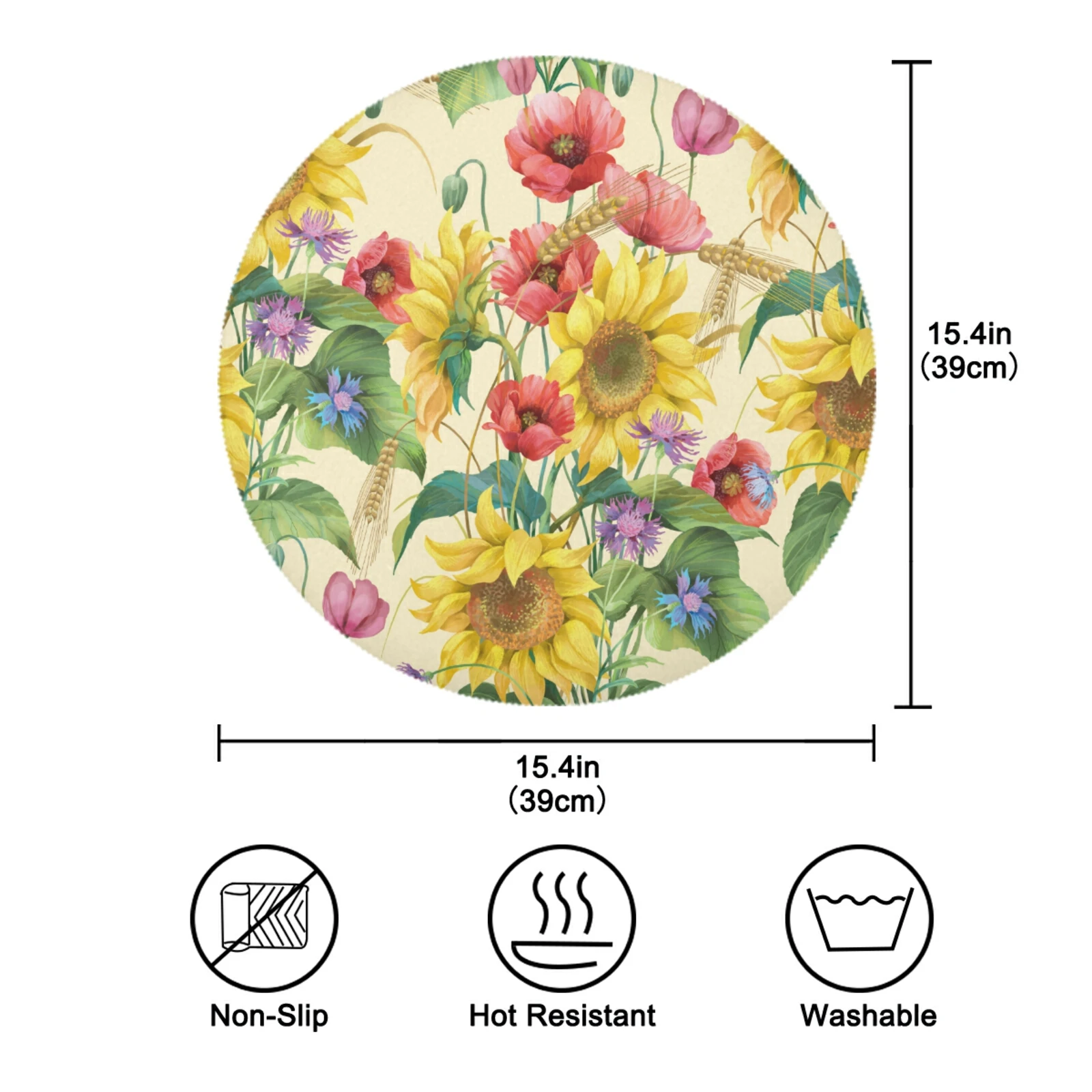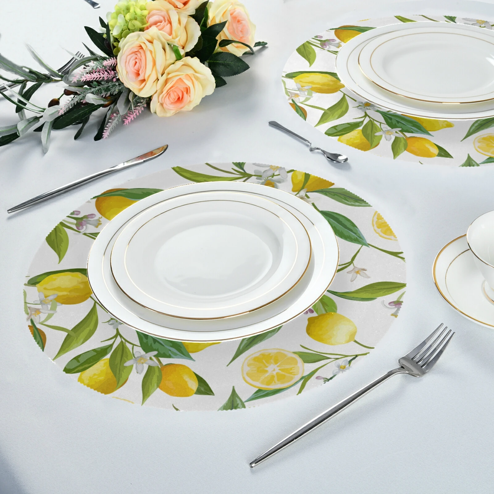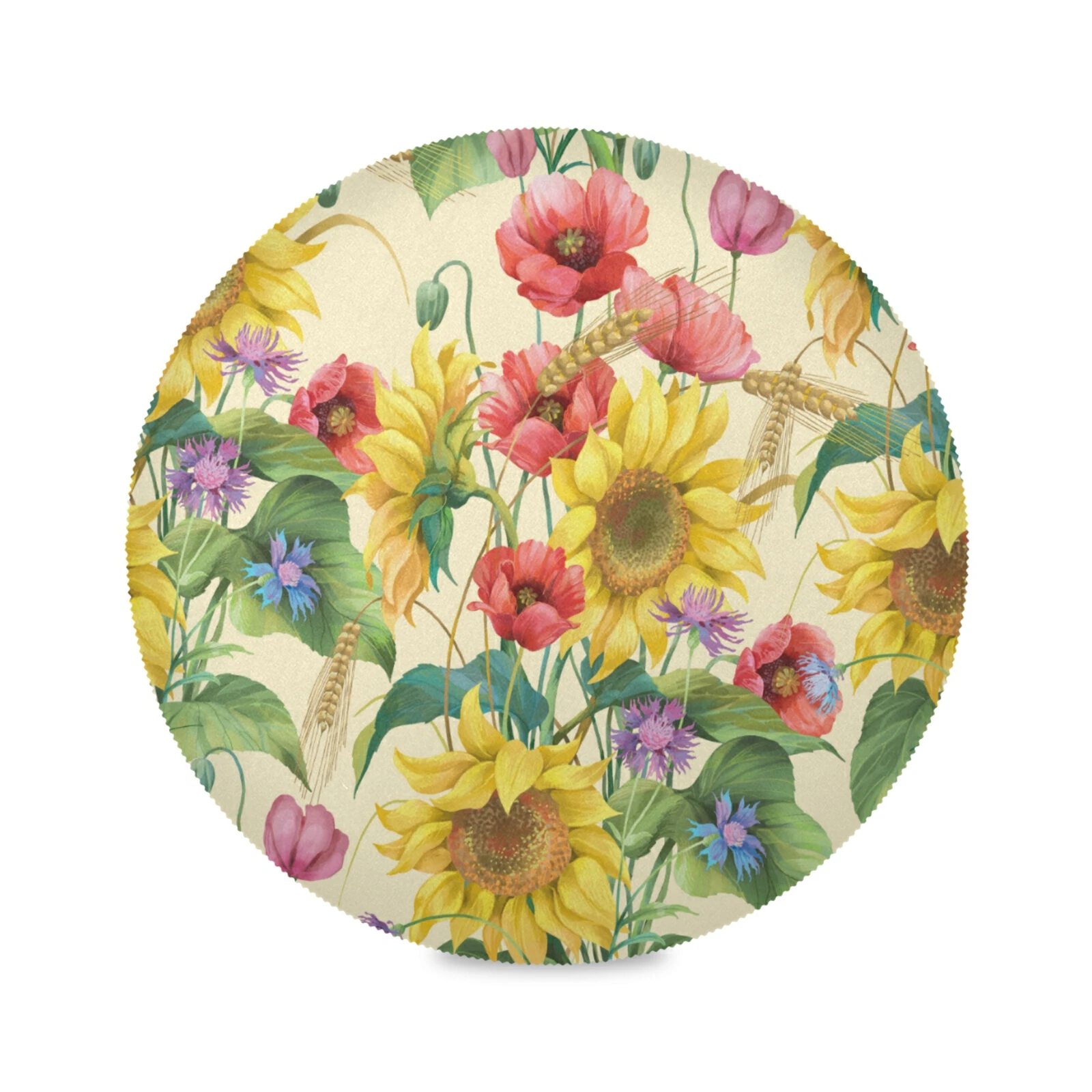 Цветочный принт с растительным принтом, коврик для ужина, круглый коврик, набор 4 Coaster, нескользящий моющийся термостойкий Настольный коврик для кухни, принадлежности