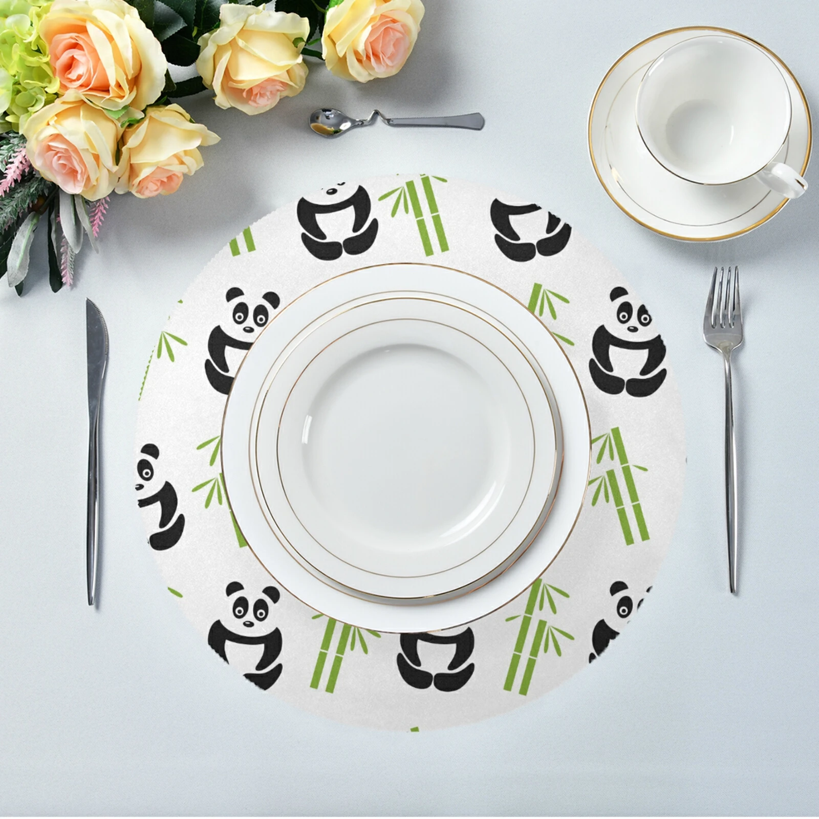 Ткань плотная, прочная и износостойкая, хорошая устойчивость к морщинам, высокая термостойкость, круглый и кружевной дизайн, индивидуальный дизайн DIY печати, практичный и декоративный. Его можно поместить в столовую и стол с украшением.