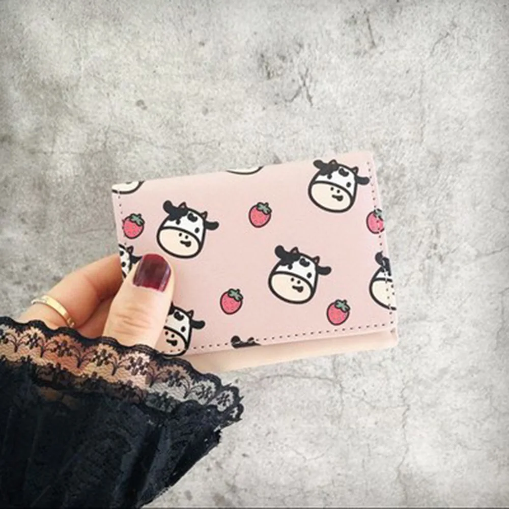 2022 модный каваи корова печати ПУ кожа мультфильм аниме мульти-слот для карт короткий женский кошелек для монет женский держатель для карт кошелек для подарка