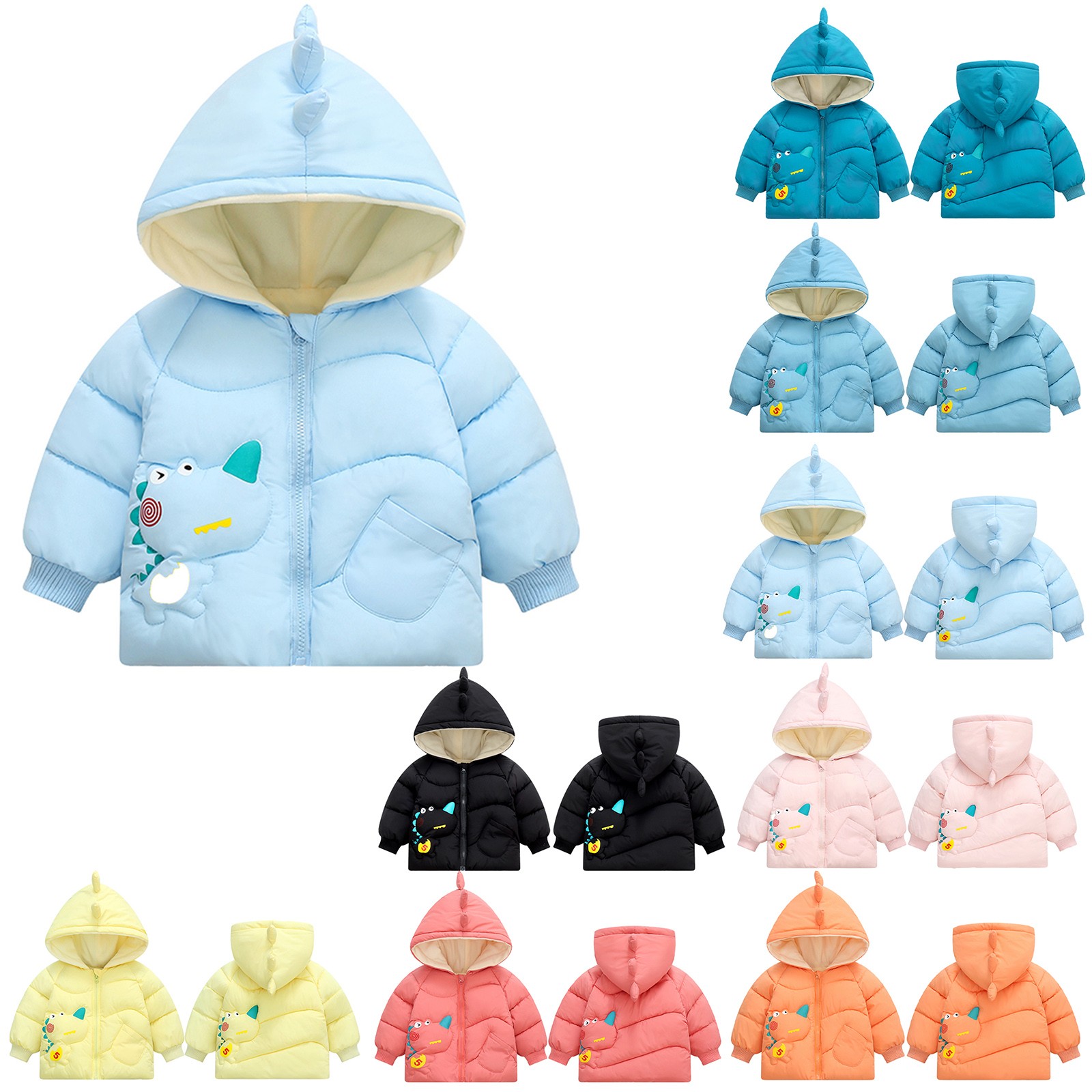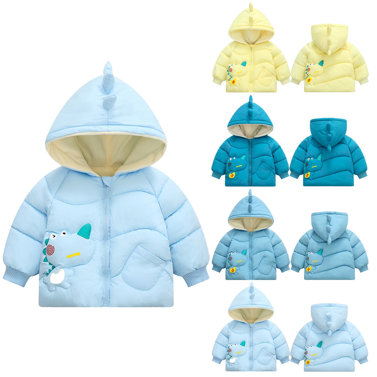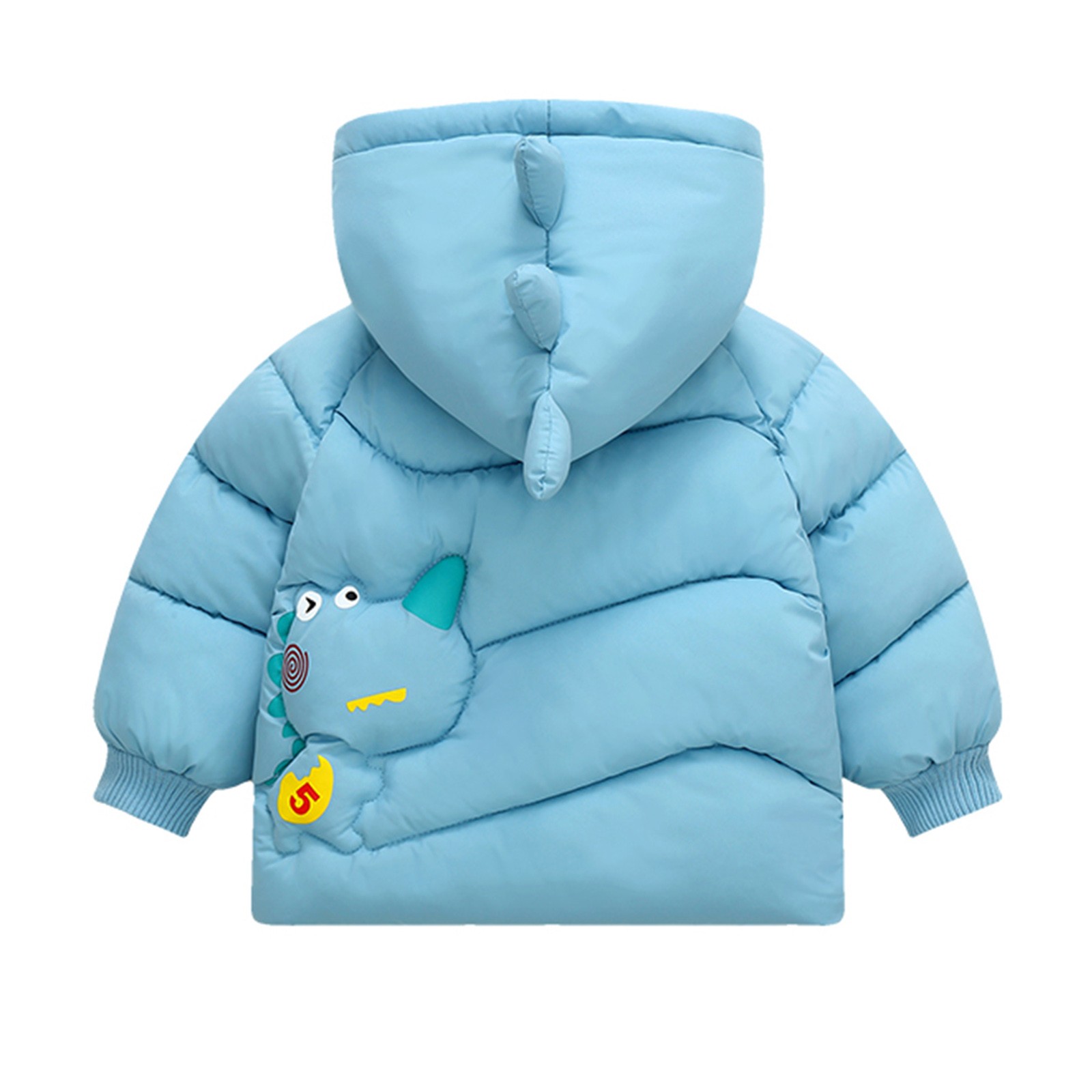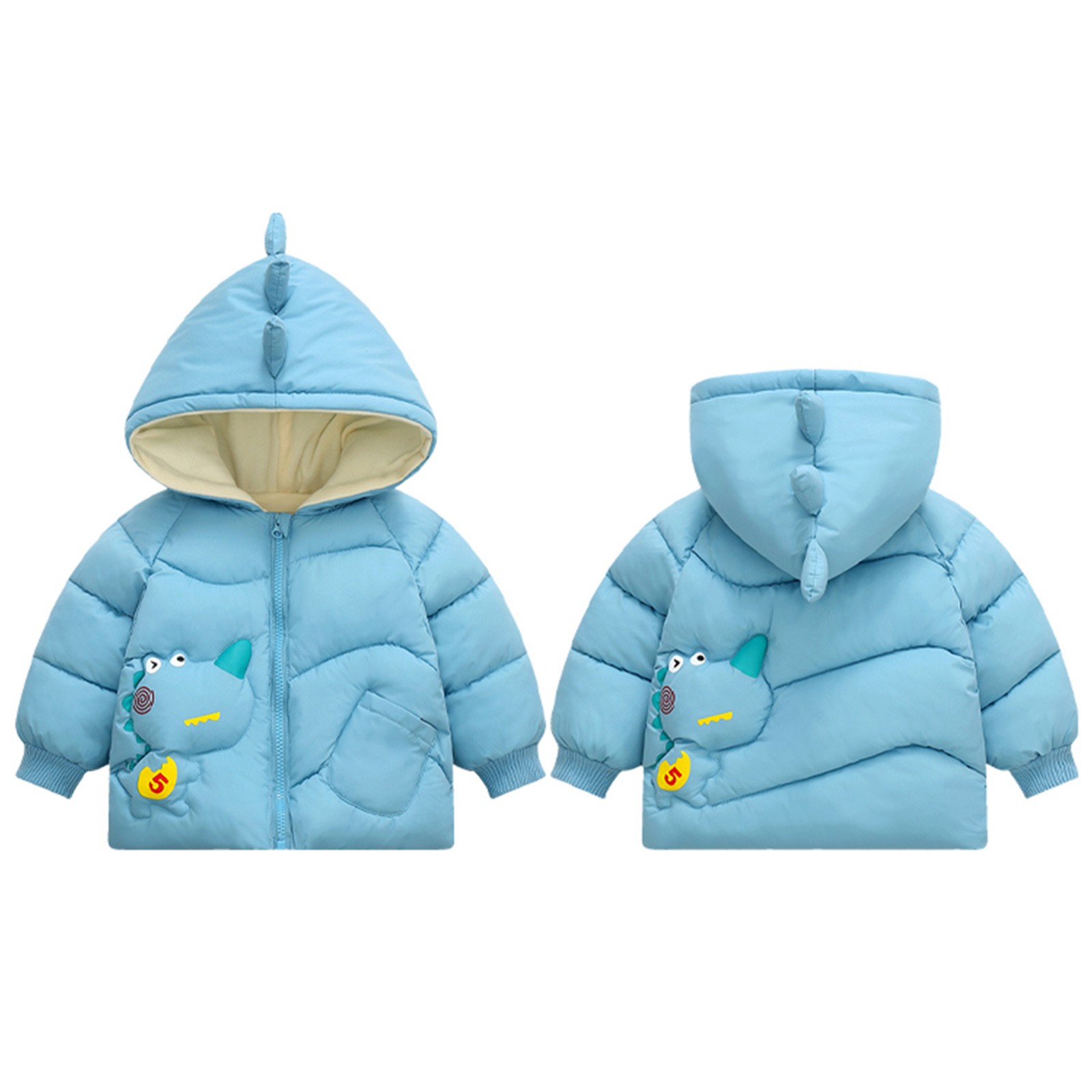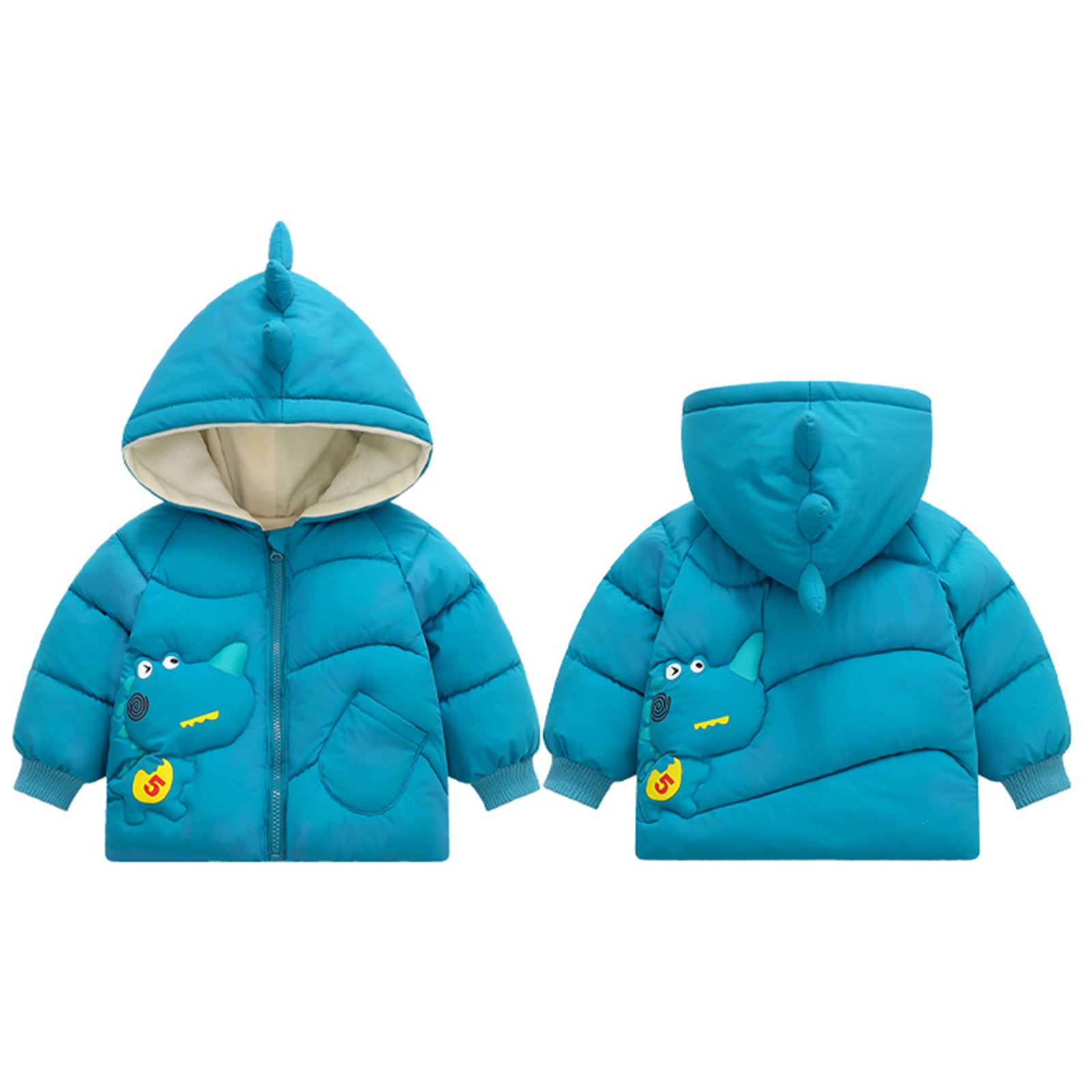 Зимняя плотная теплая куртка с капюшоном с рисунком динозавра для маленьких мальчиков и девочек