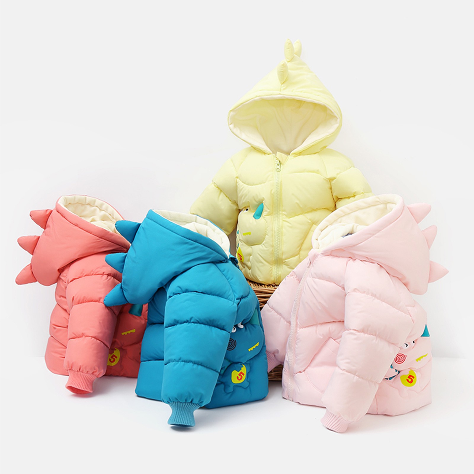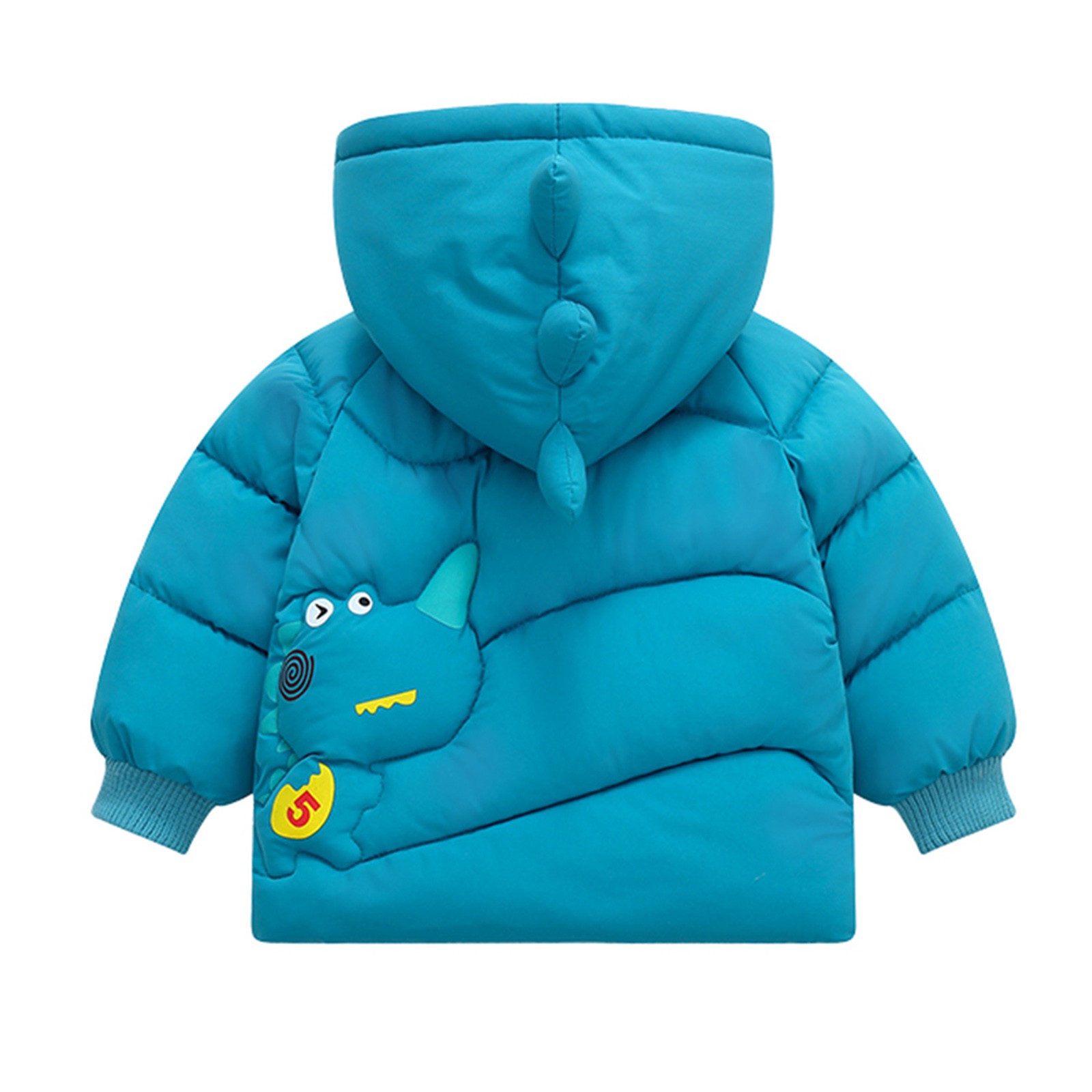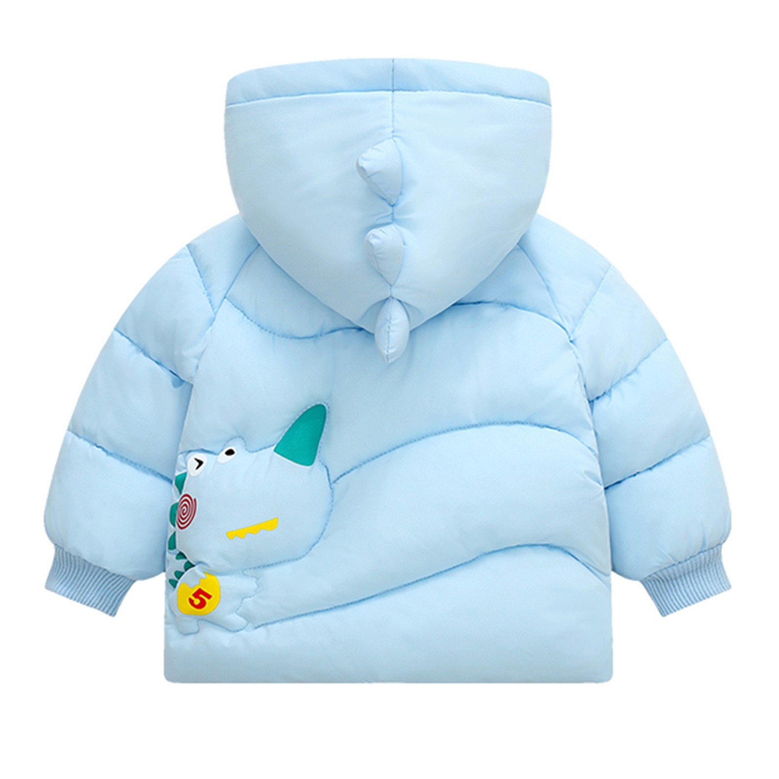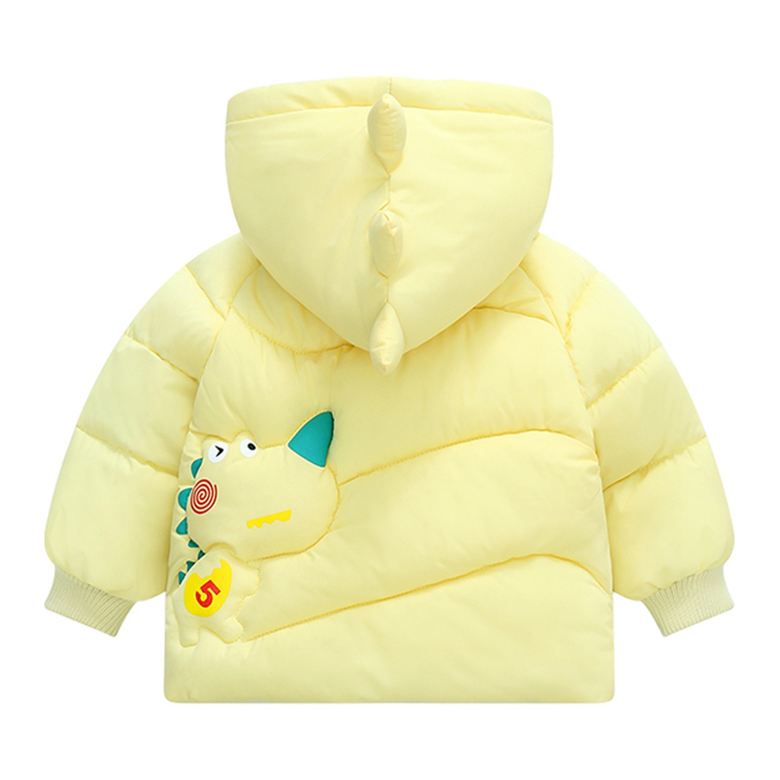 Зимняя плотная теплая куртка с капюшоном с рисунком динозавра для маленьких мальчиков и девочек