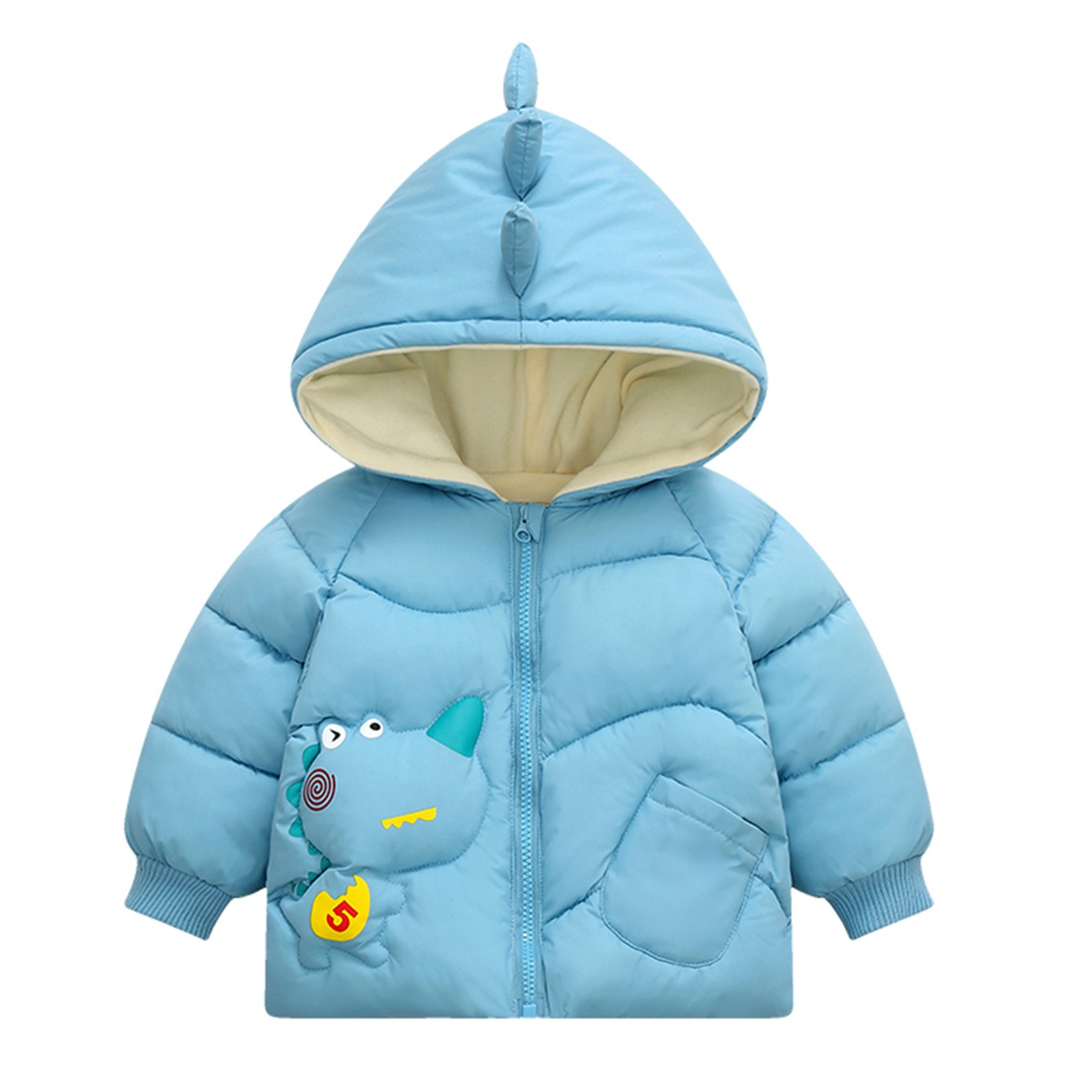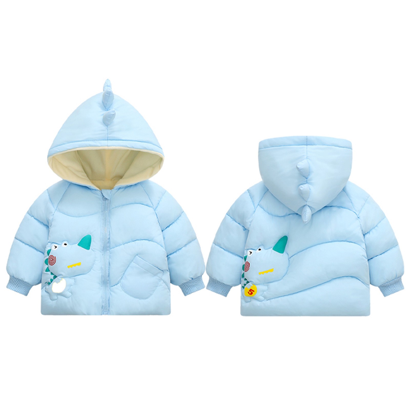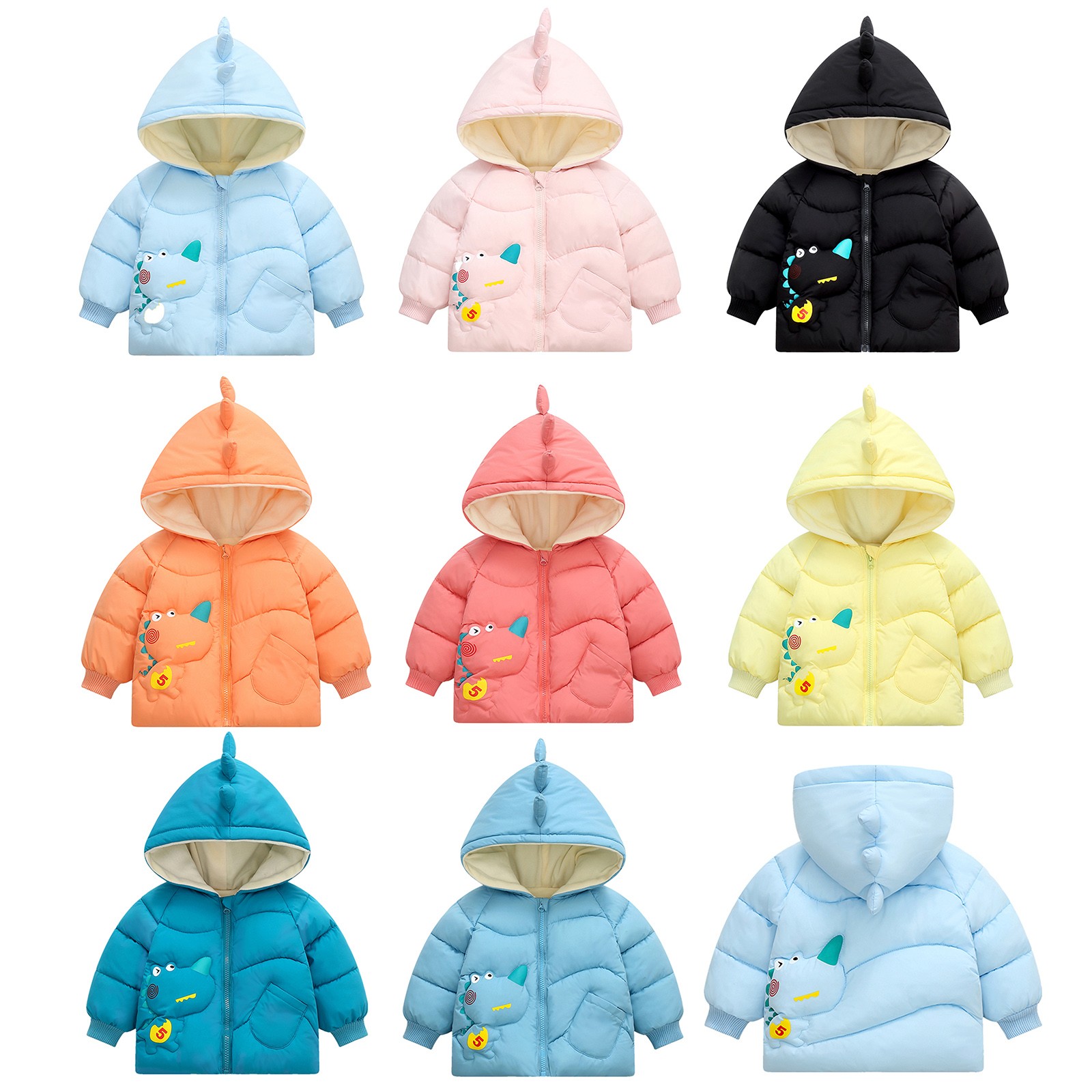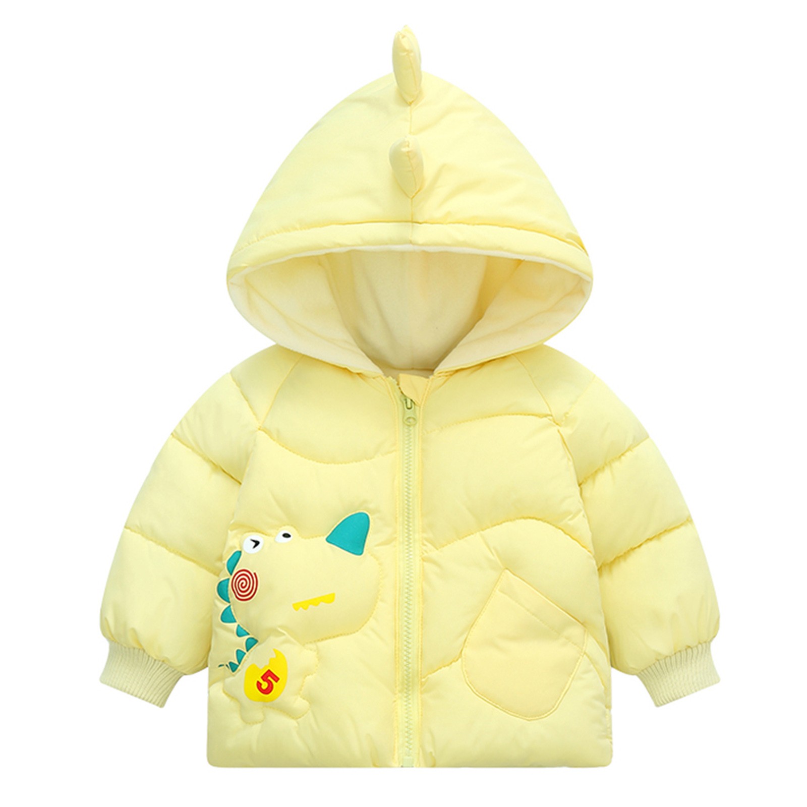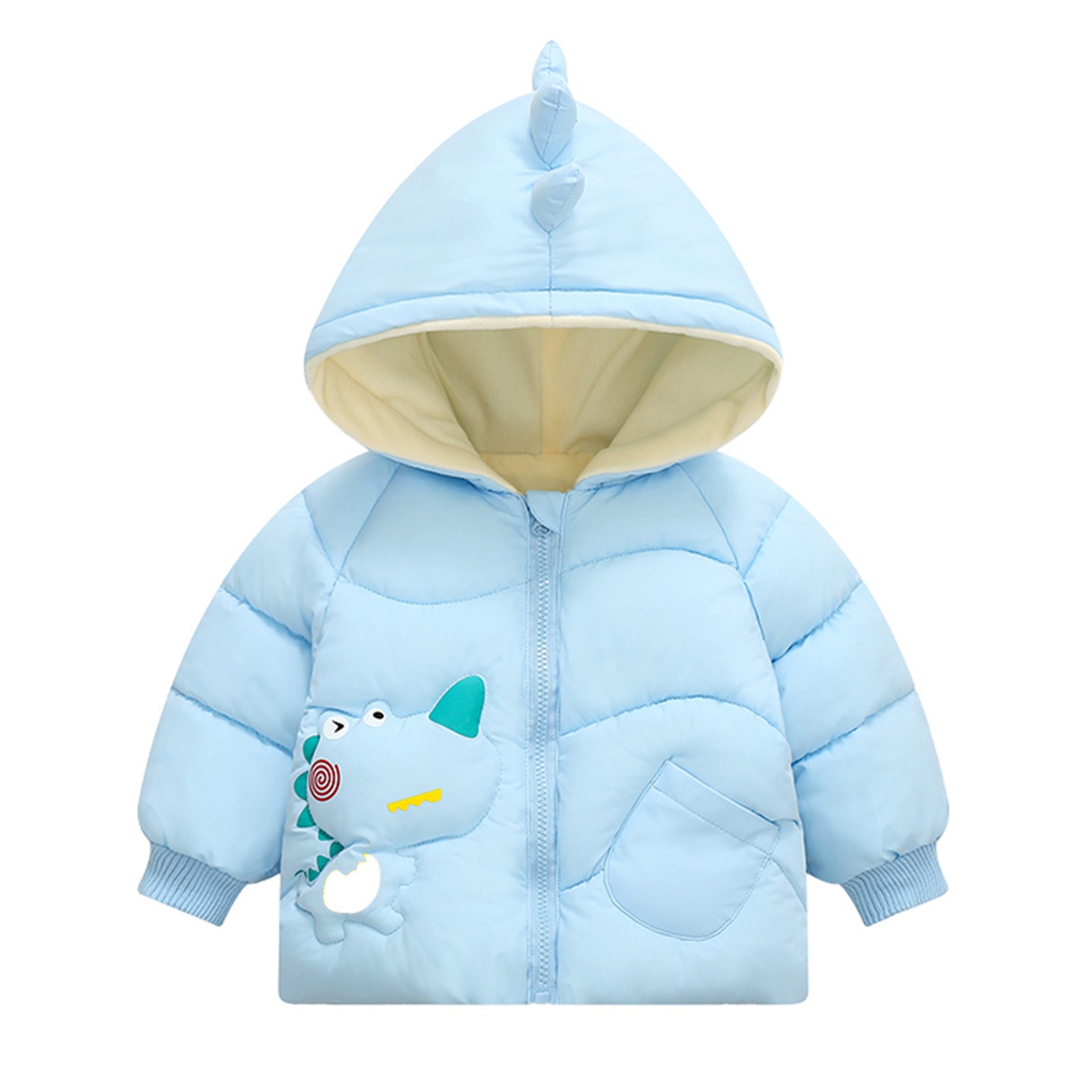Зимняя плотная теплая куртка с капюшоном с рисунком динозавра для маленьких мальчиков и девочек