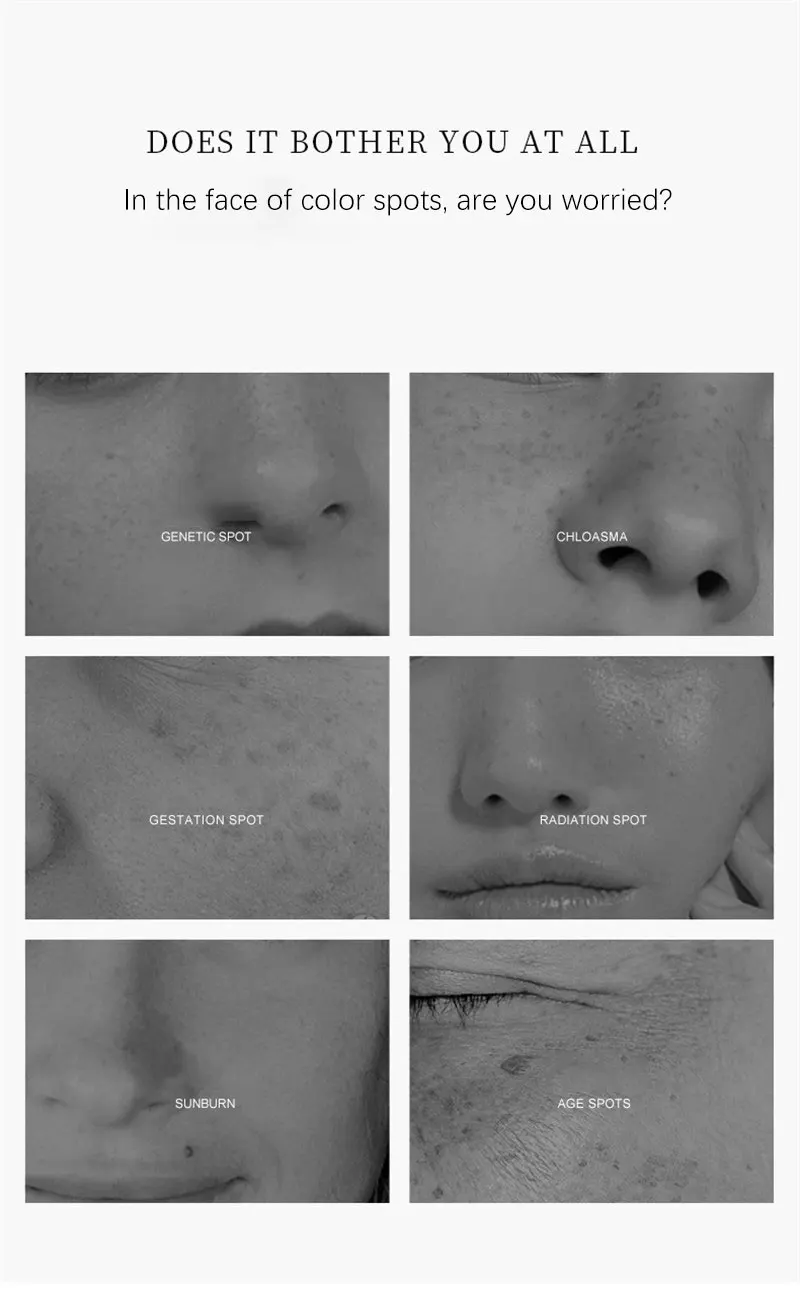 Эффективность: Этот продукт имеет Веснушку, удаление морщин, хлоазму, веснушки, возрастные пятна и другие пятна. Он имеет специальные эффекты для ухода за акне (акне) молодых людей. Это также оказывает значительное воздействие. Поддерживать высококачественные технологии генной красоты, эксклюзивное использование сывороточного белка, алдол биохимической кислоты и других биологических формул, И используйте медленный выпуск микрокапсул Нанотехнологии для защиты активных генов и повышения генной активности кремовой матрицы. Эффективный фактор выживания, более быстрый отбеливающий эффект, отсутствие побочных эффектов.