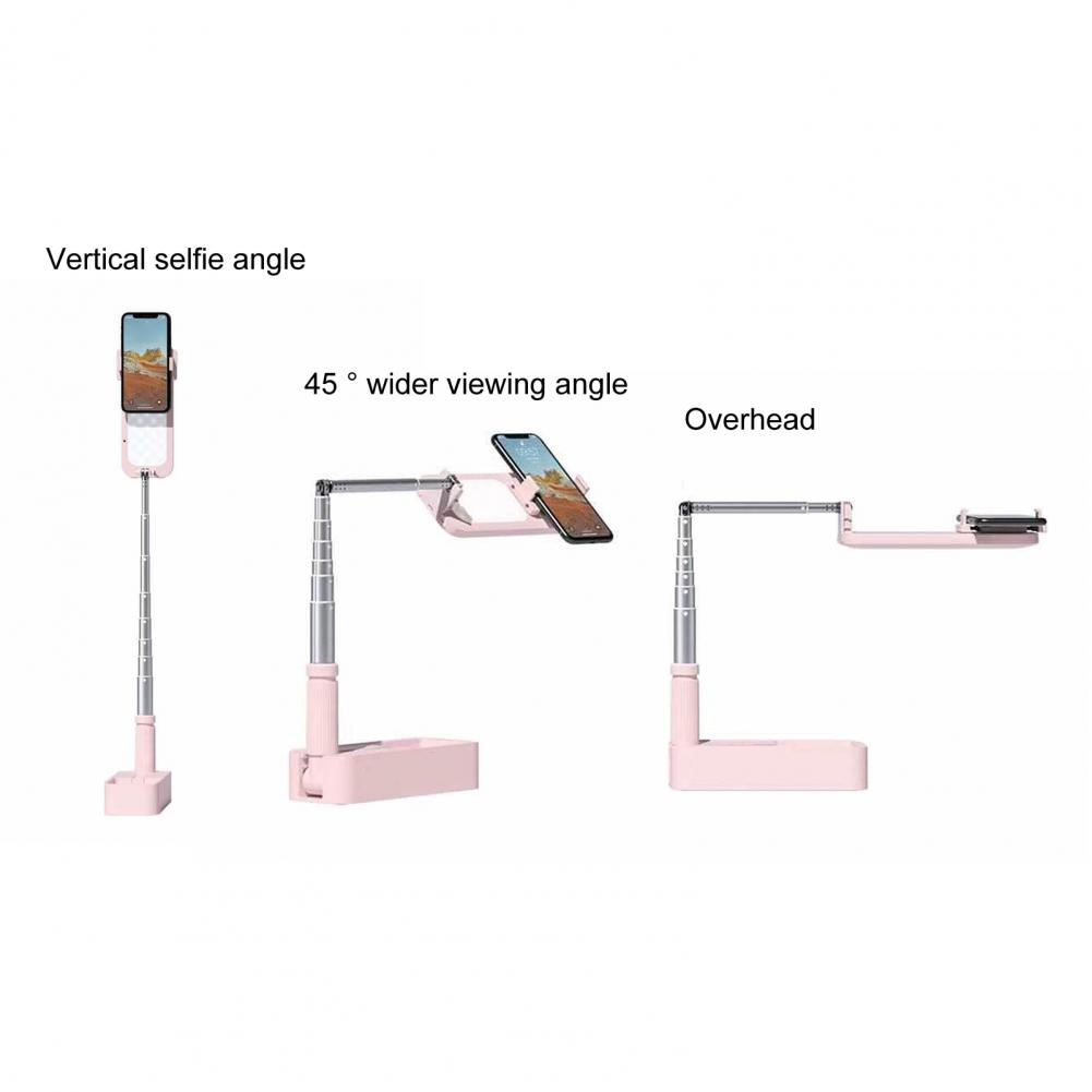 Благодаря складываемому дизайну держатель на мобильный телефон легко переносится во время путешествий или работы на открытом воздухе. Так как он принимает с трехмерной аппликацией в виде наклонно-поворотное дизайн, он может поддерживать 360 градусов съемки, панорамный высокого угла съемки, двухсторонний заполнить светильник и Bluetooth-Совместимость с операционными Автоспуск.