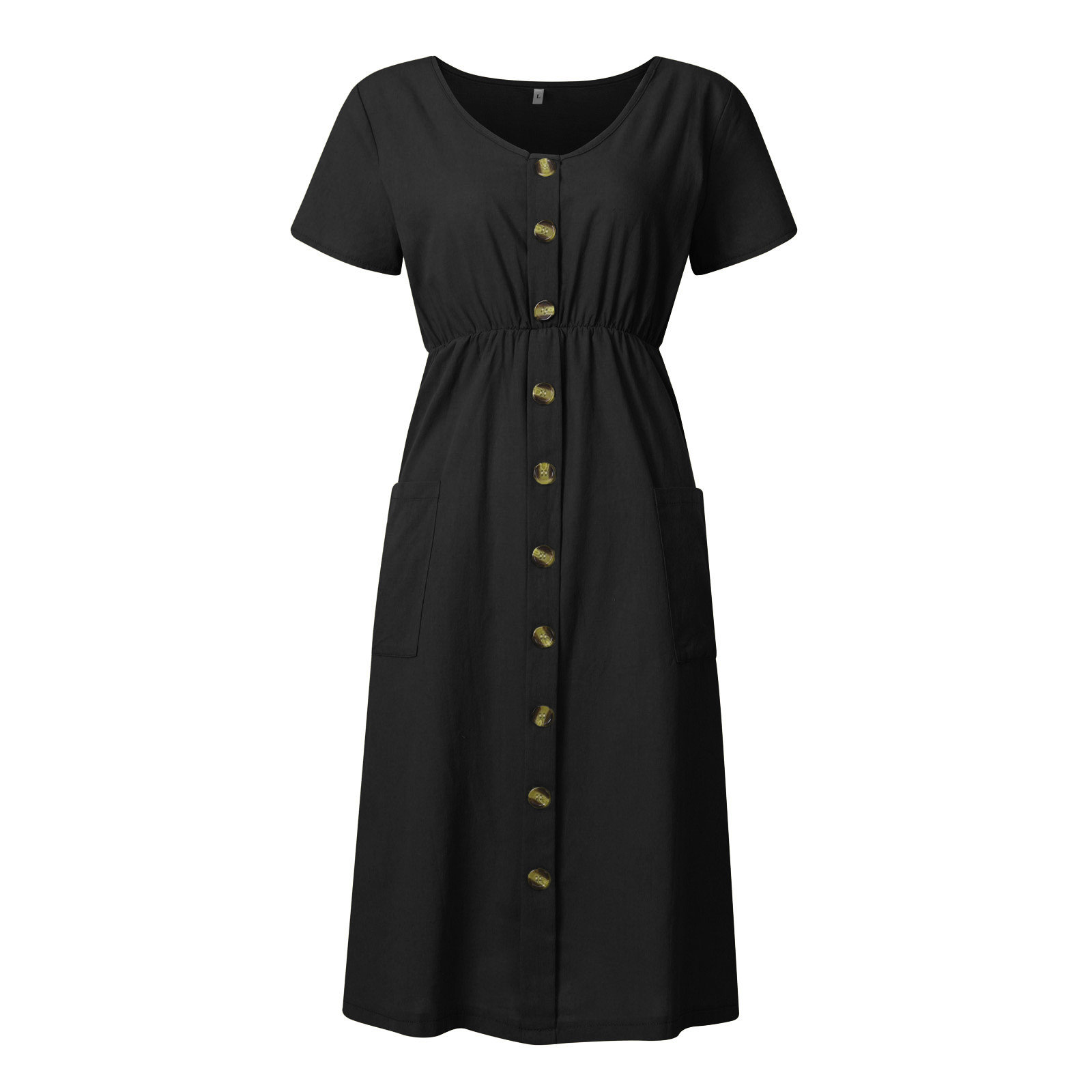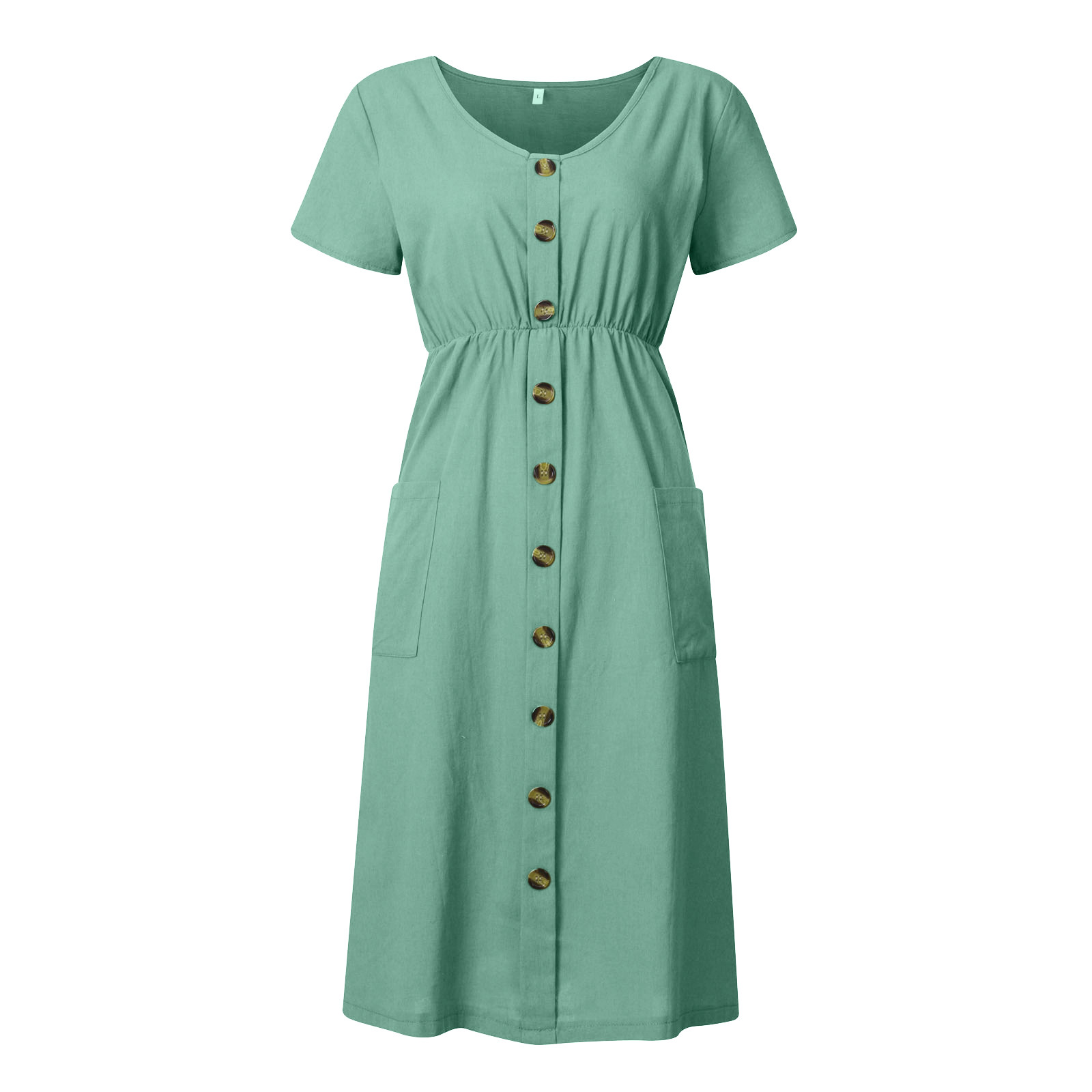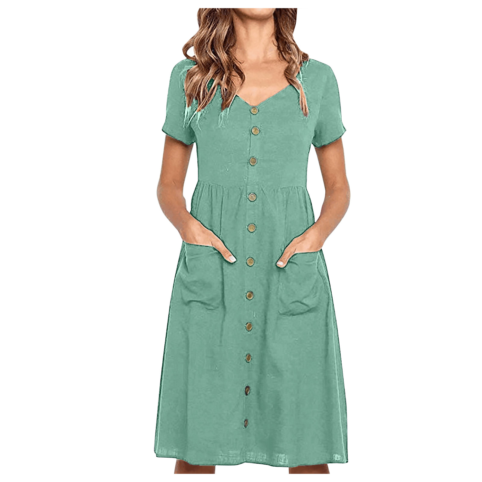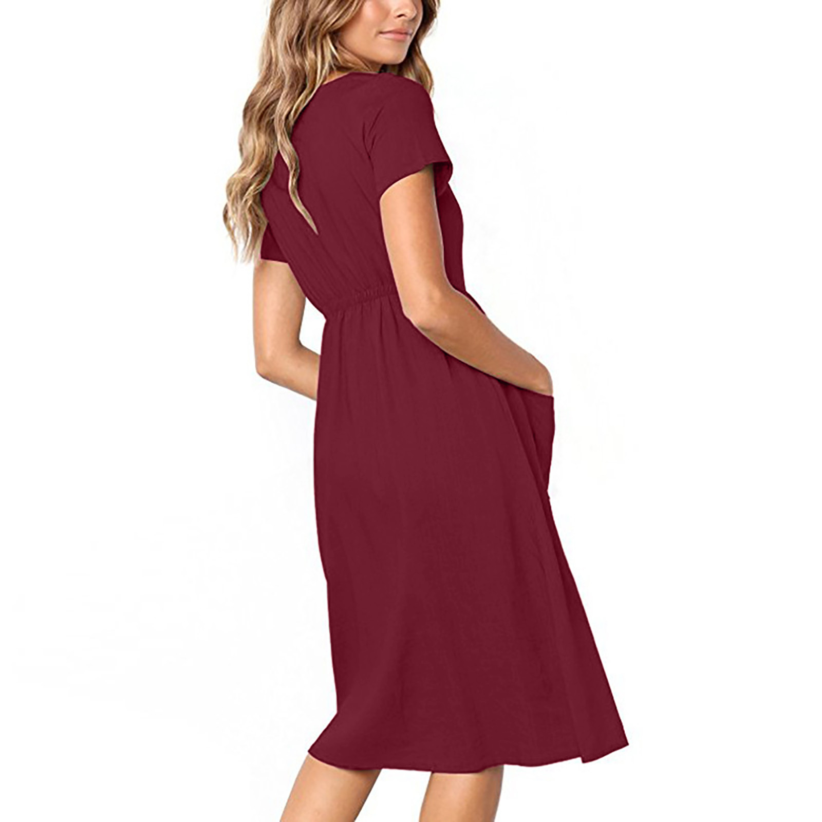 4. Особенности: Повседневный стиль, показывающий ваше уникальное очарование и жизненную силу, придает ощущение элегантности и стиля. Женское повседневное однотонное платье трапециевидной формы с короткими рукавами и v-образным вырезом на пуговицах, мягкое и удобное, вам понравится, когда вы его получите