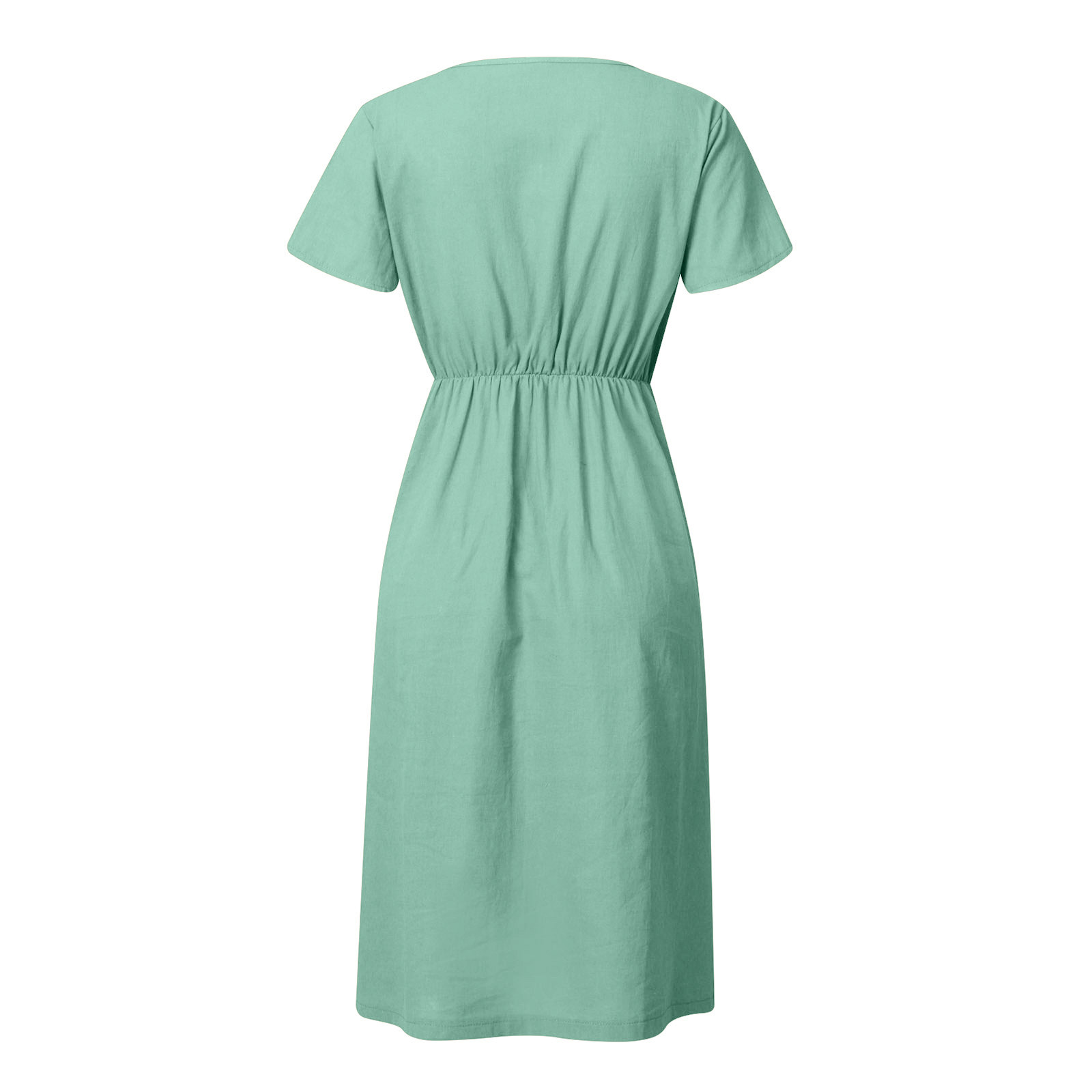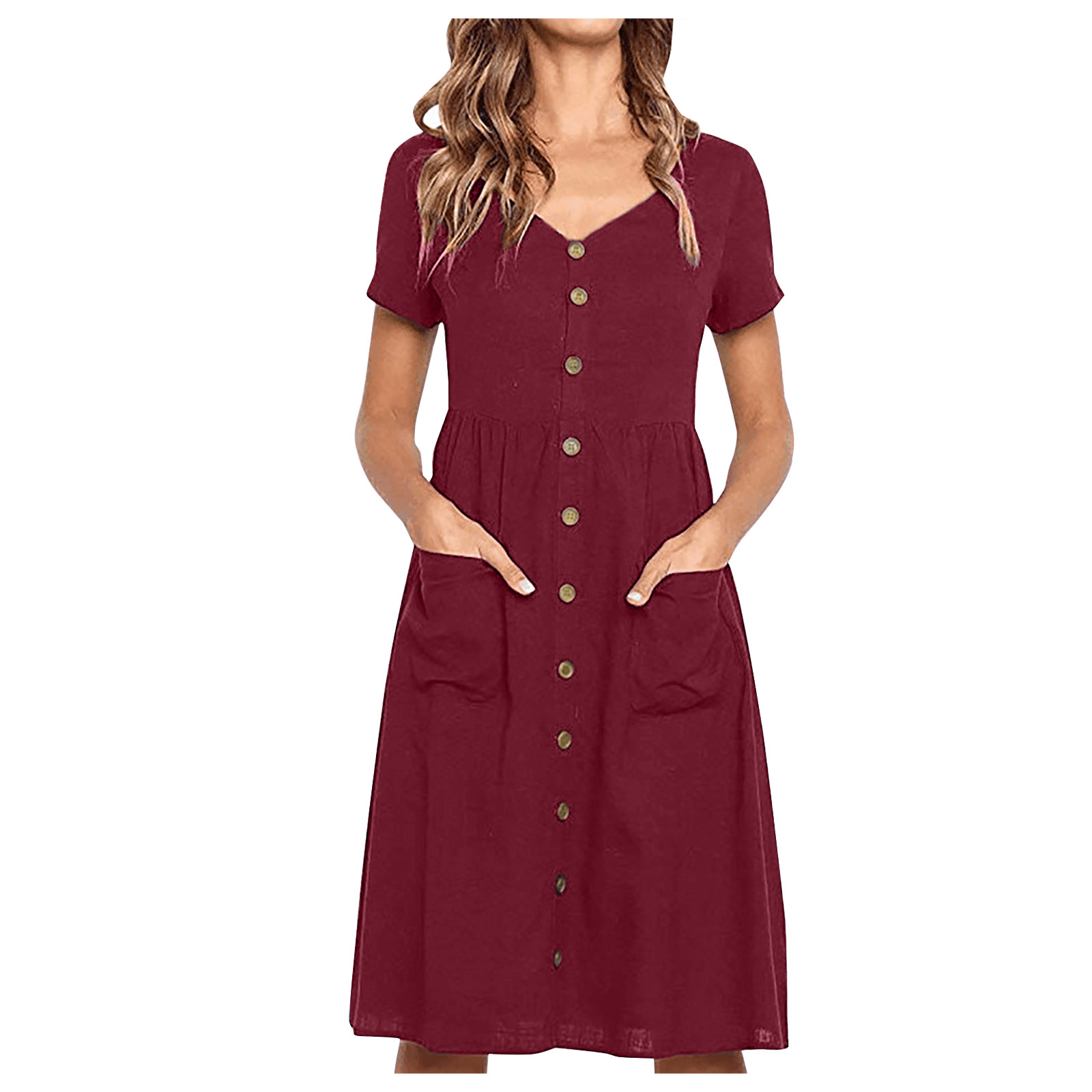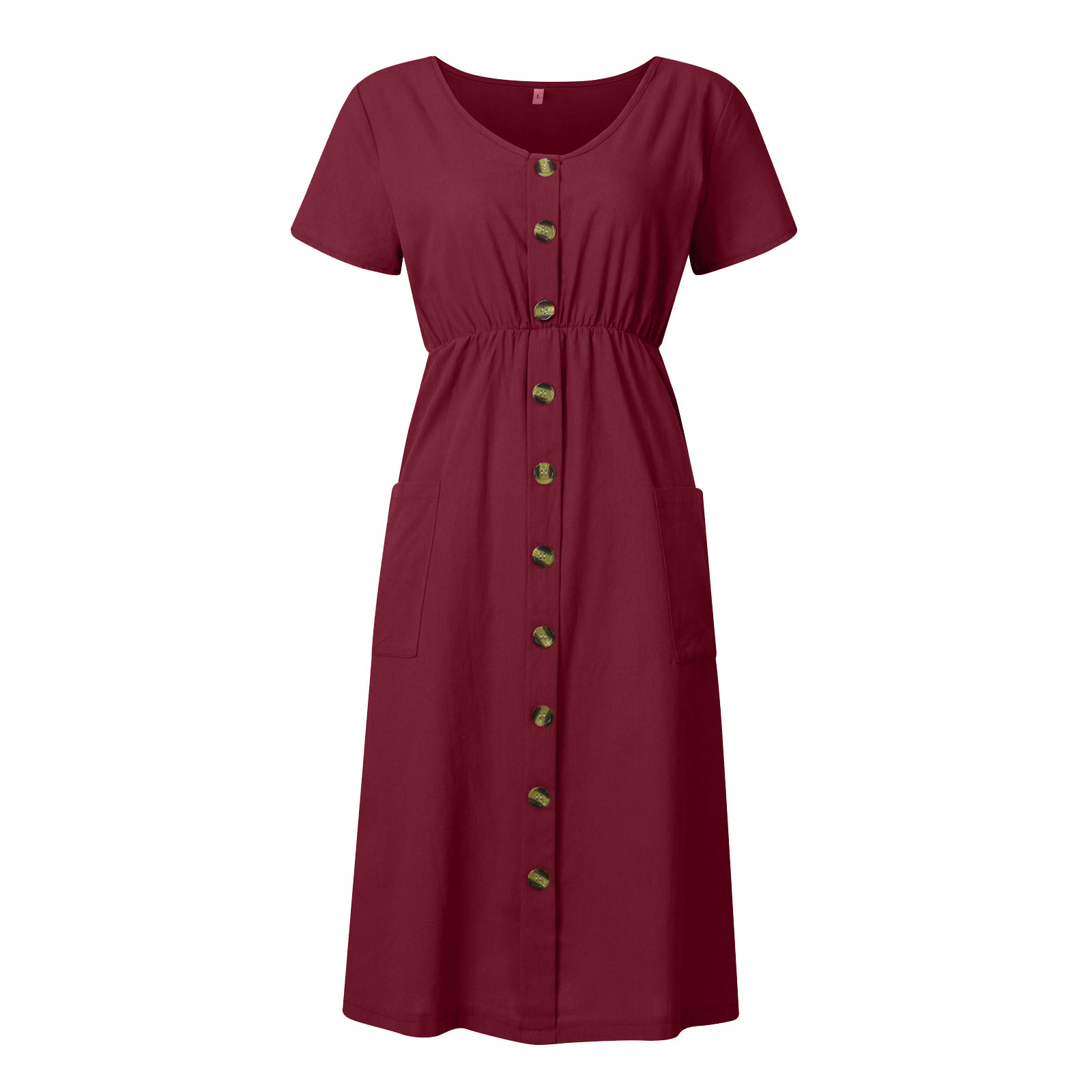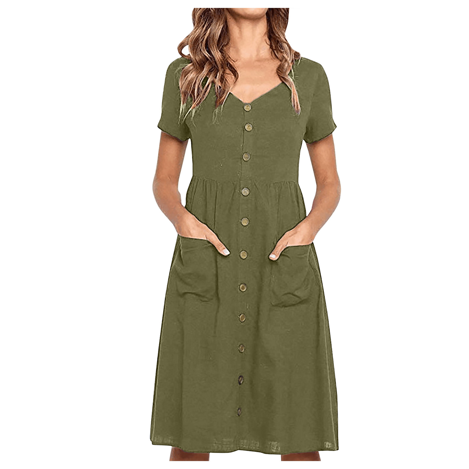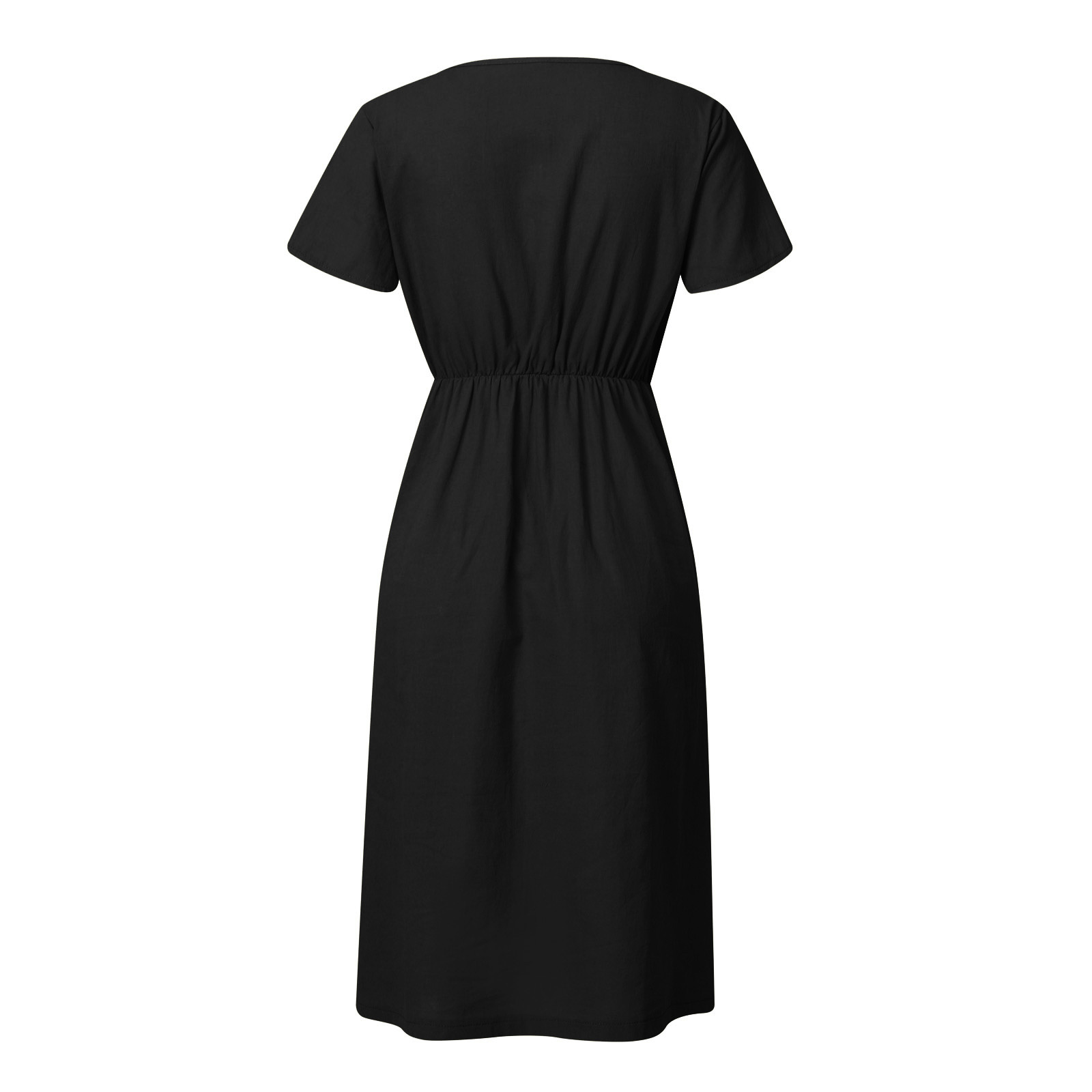 4. Особенности: Повседневный стиль, показывающий ваше уникальное очарование и жизненную силу, придает ощущение элегантности и стиля. Женское повседневное однотонное платье трапециевидной формы с короткими рукавами и v-образным вырезом на пуговицах, мягкое и удобное, вам понравится, когда вы его получите