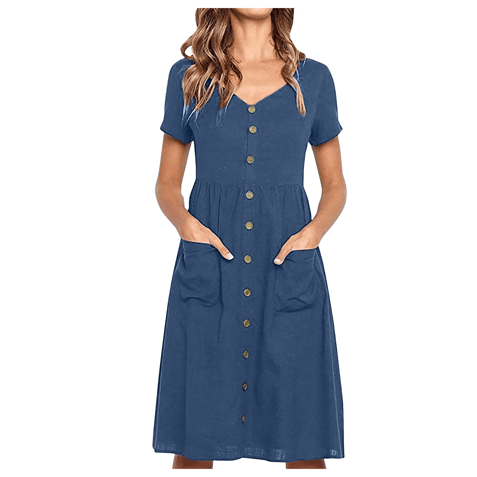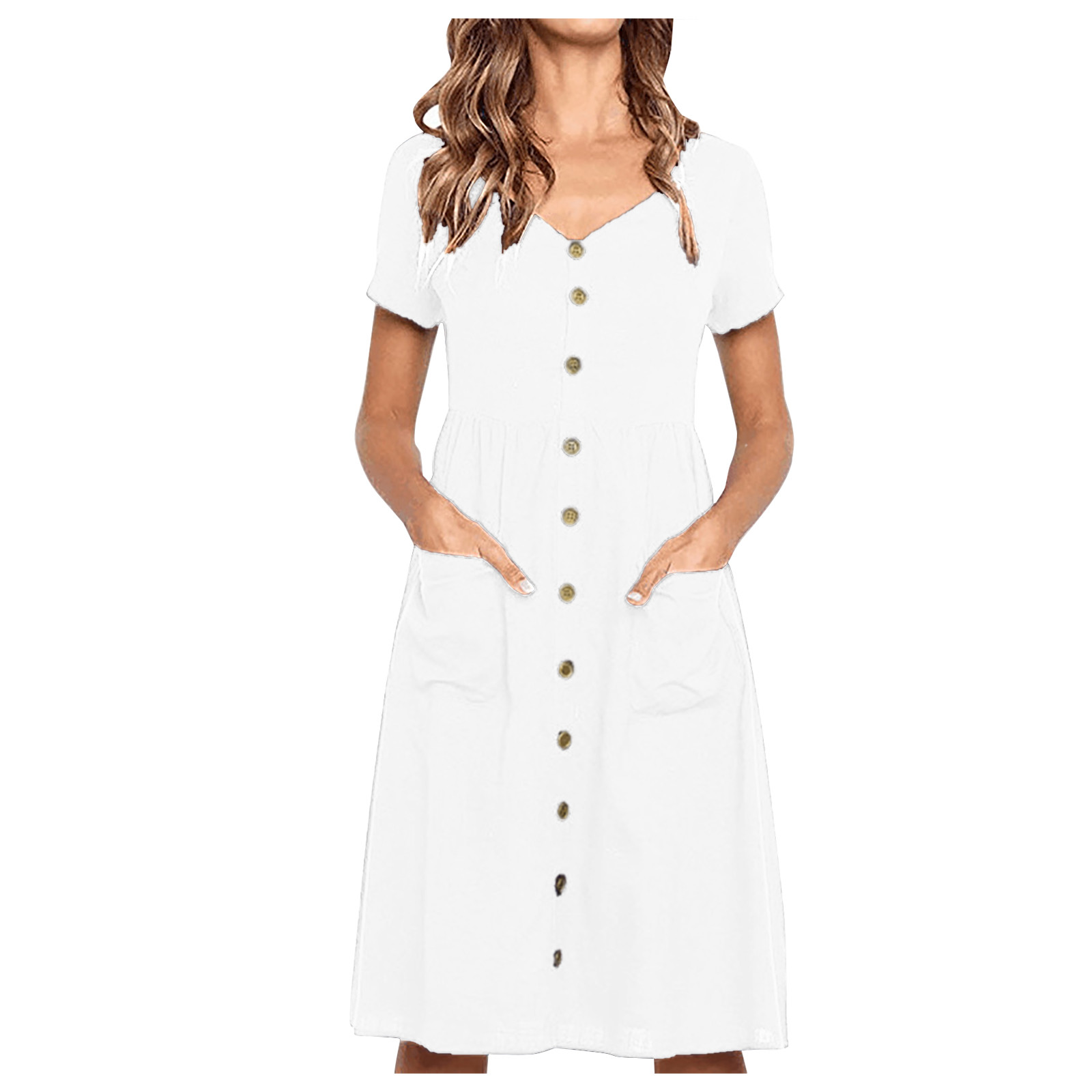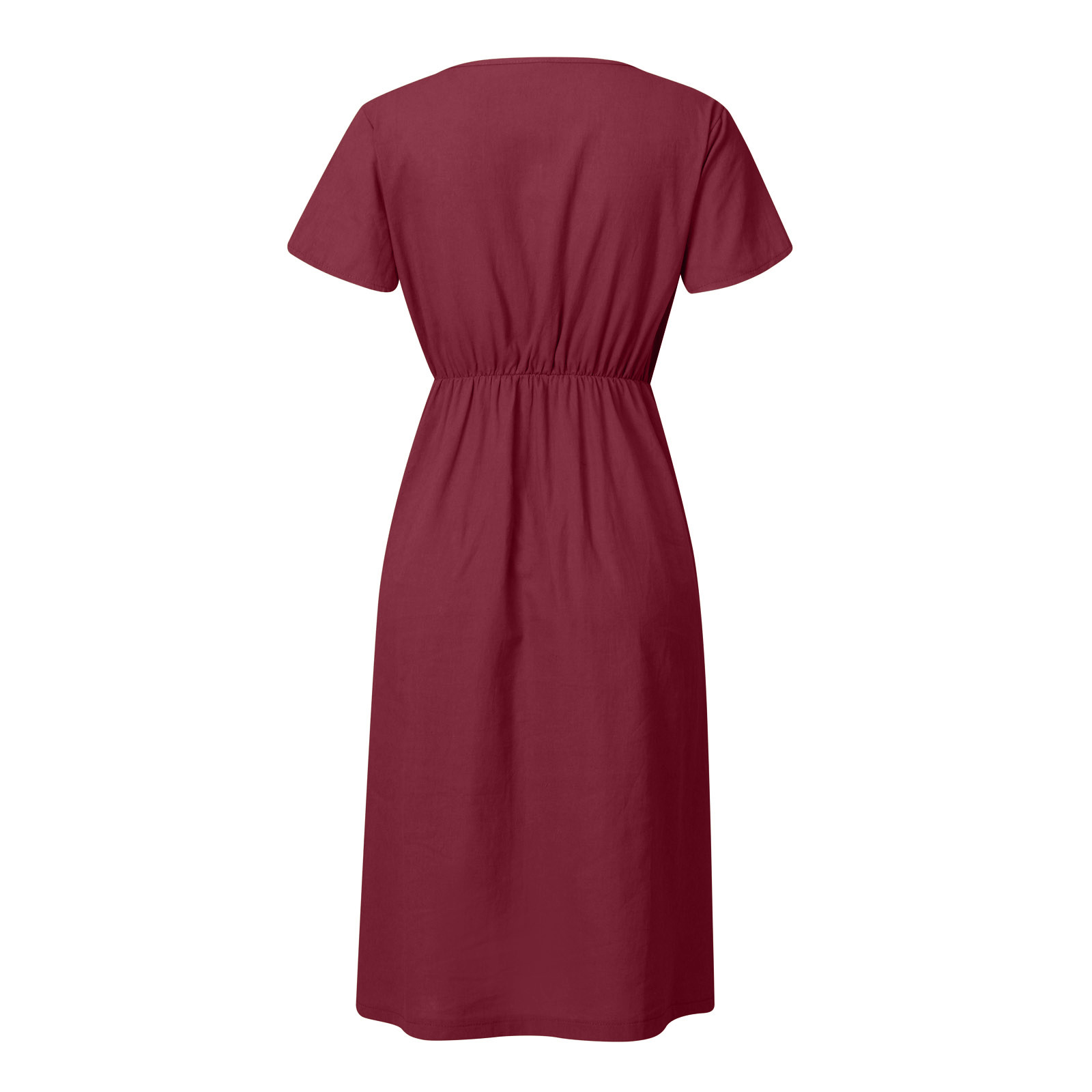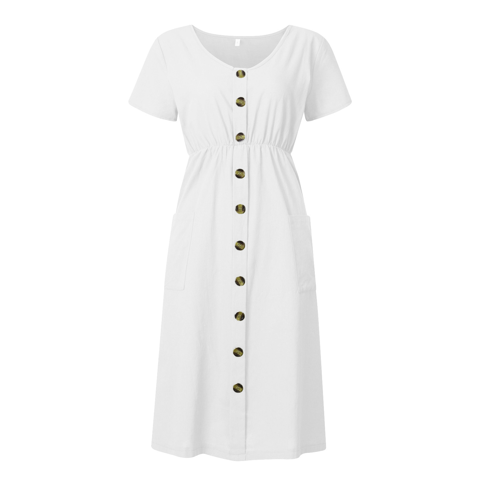 4. Особенности: Повседневный стиль, показывающий ваше уникальное очарование и жизненную силу, придает ощущение элегантности и стиля. Женское повседневное однотонное платье трапециевидной формы с короткими рукавами и v-образным вырезом на пуговицах, мягкое и удобное, вам понравится, когда вы его получите