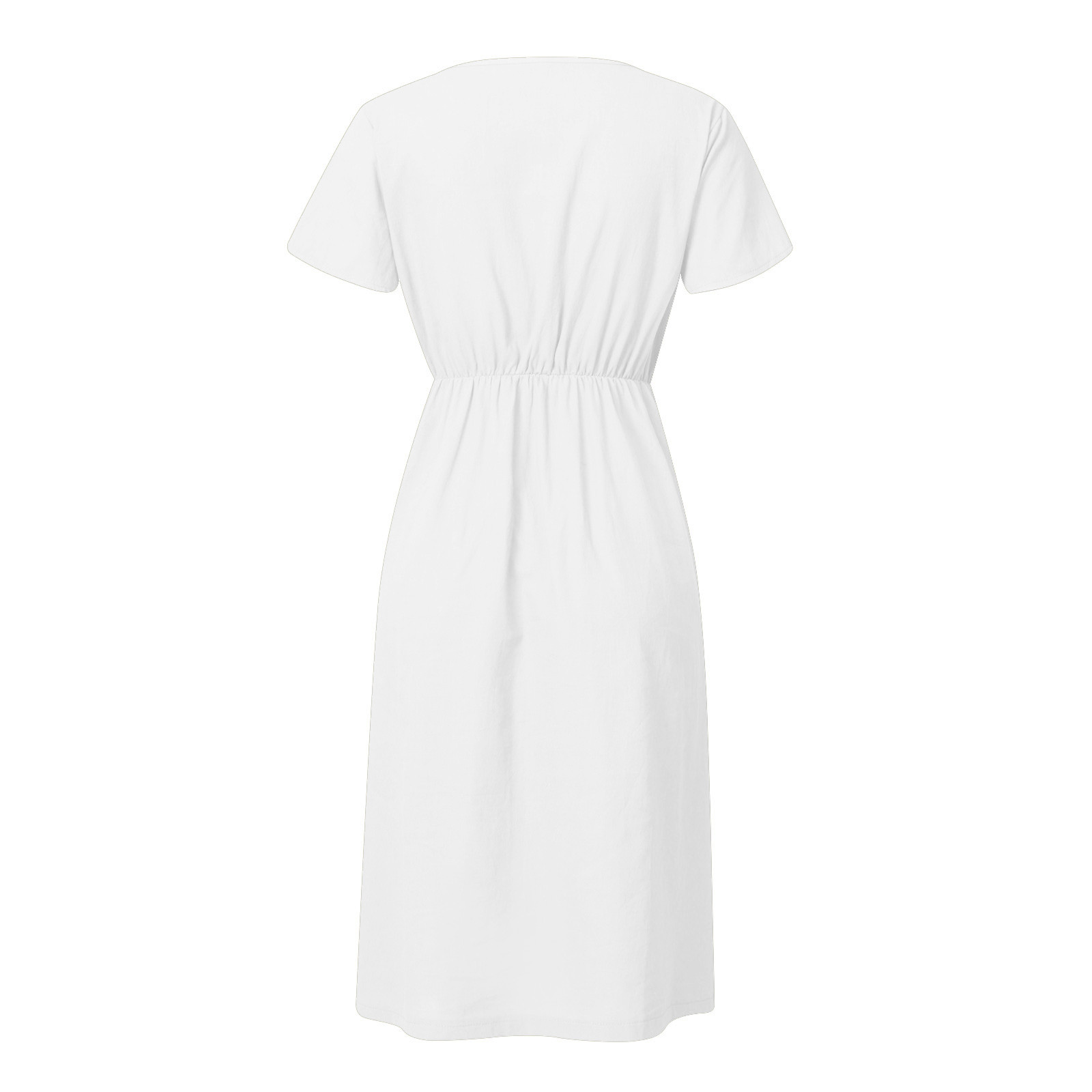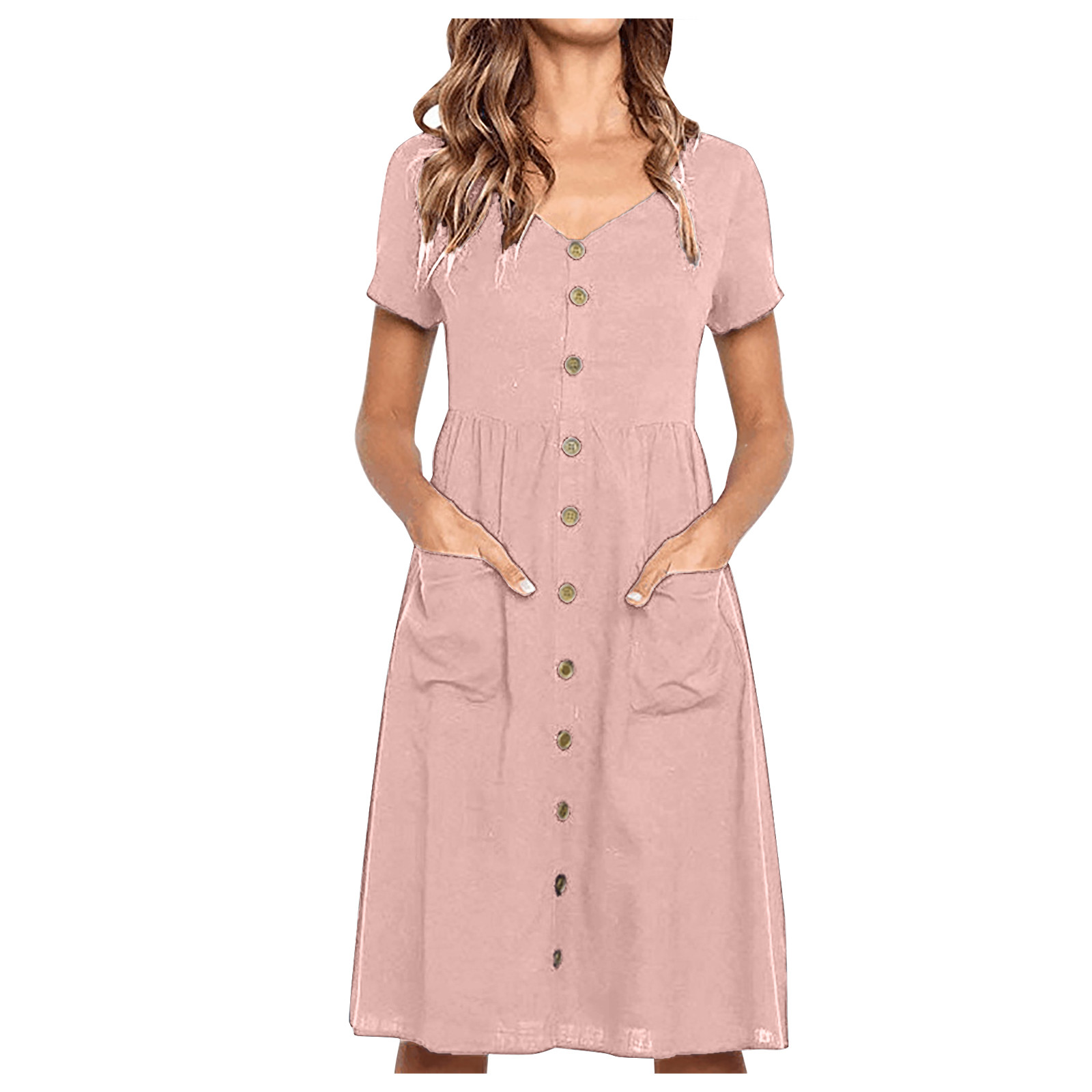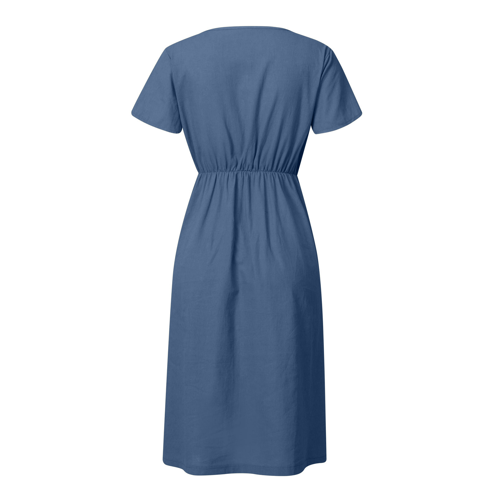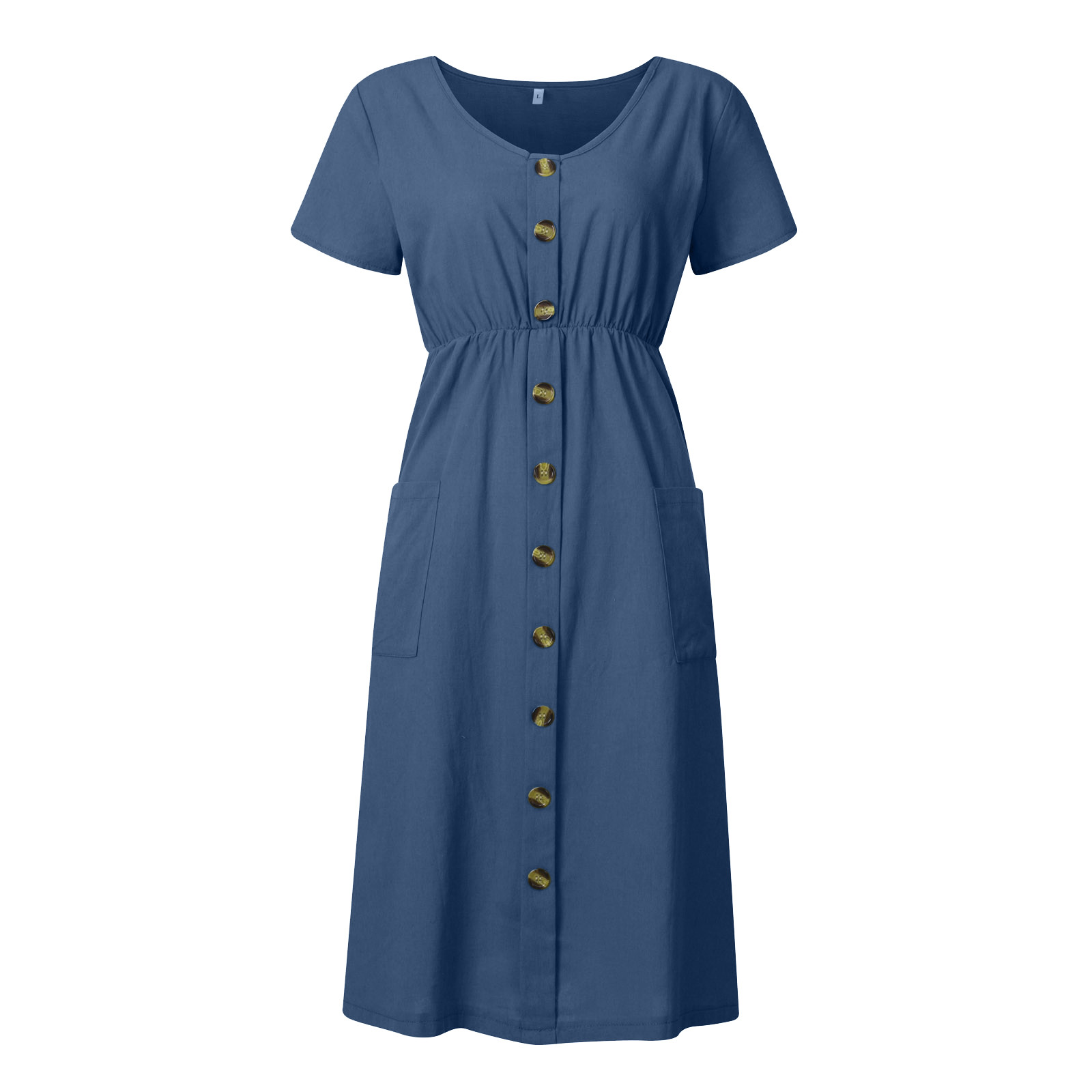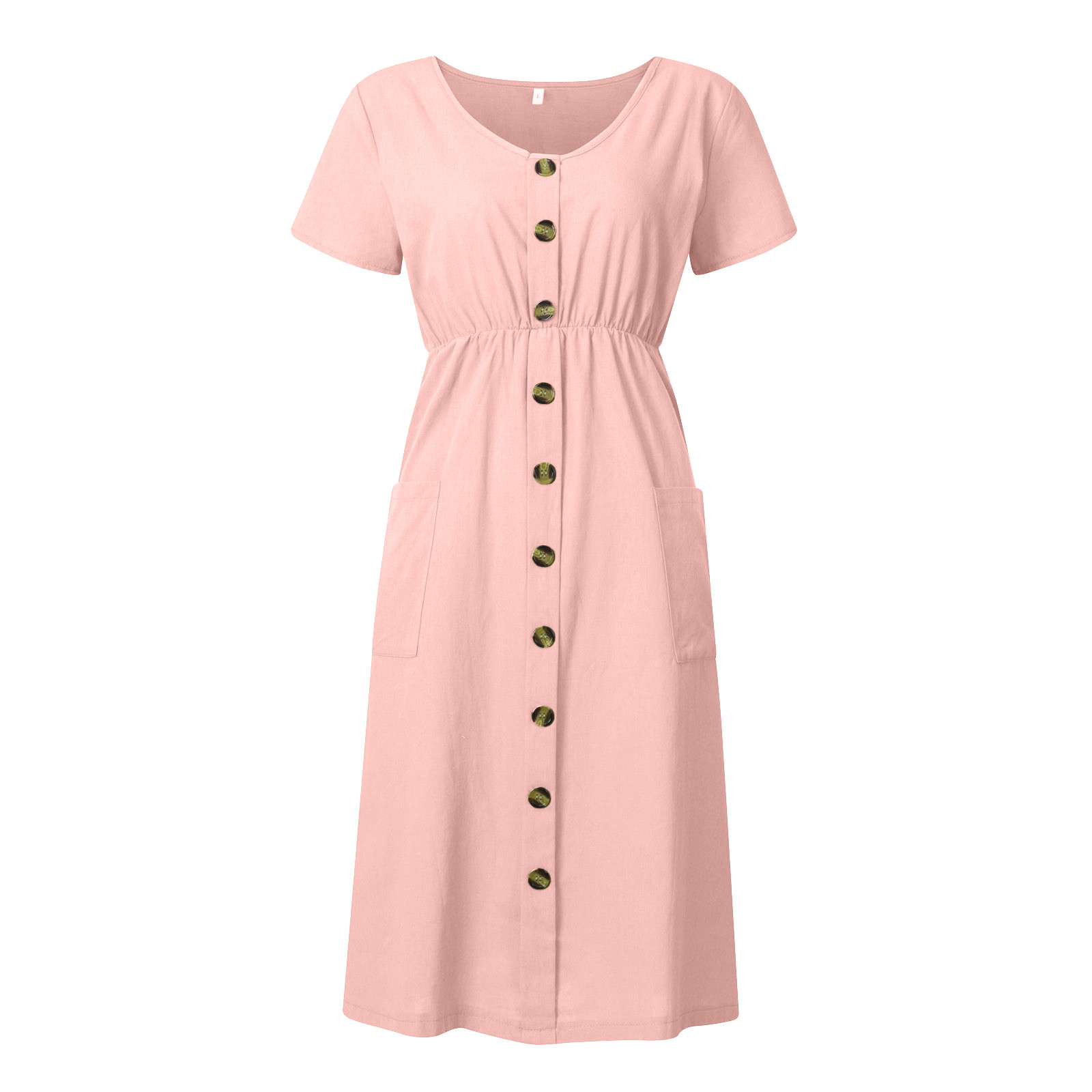 4. Особенности: Повседневный стиль, показывающий ваше уникальное очарование и жизненную силу, придает ощущение элегантности и стиля. Женское повседневное однотонное платье трапециевидной формы с короткими рукавами и v-образным вырезом на пуговицах, мягкое и удобное, вам понравится, когда вы его получите