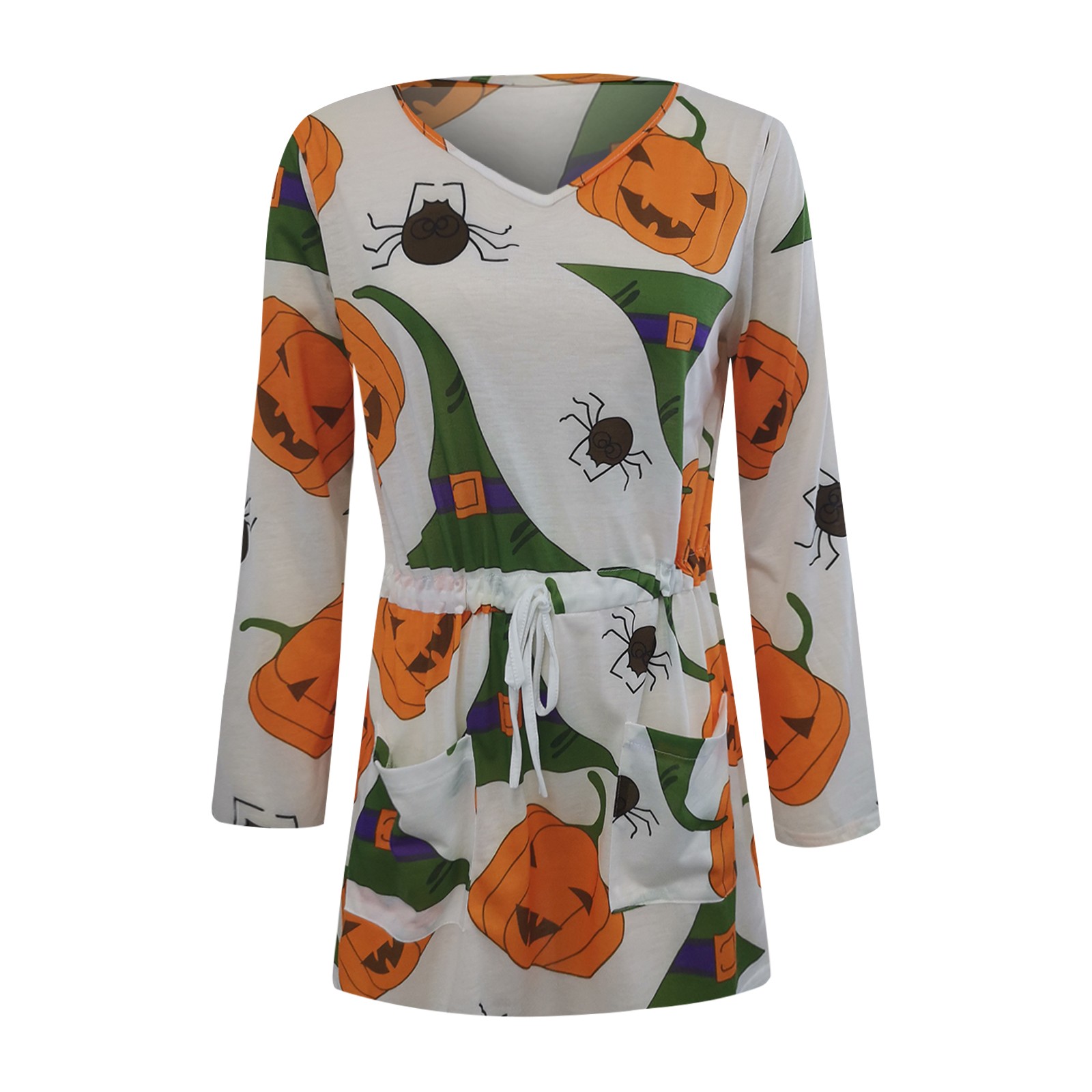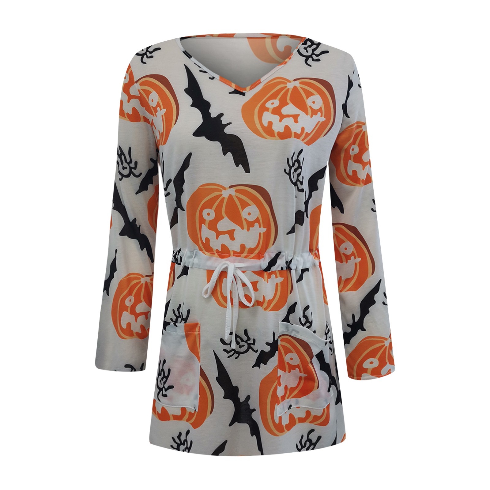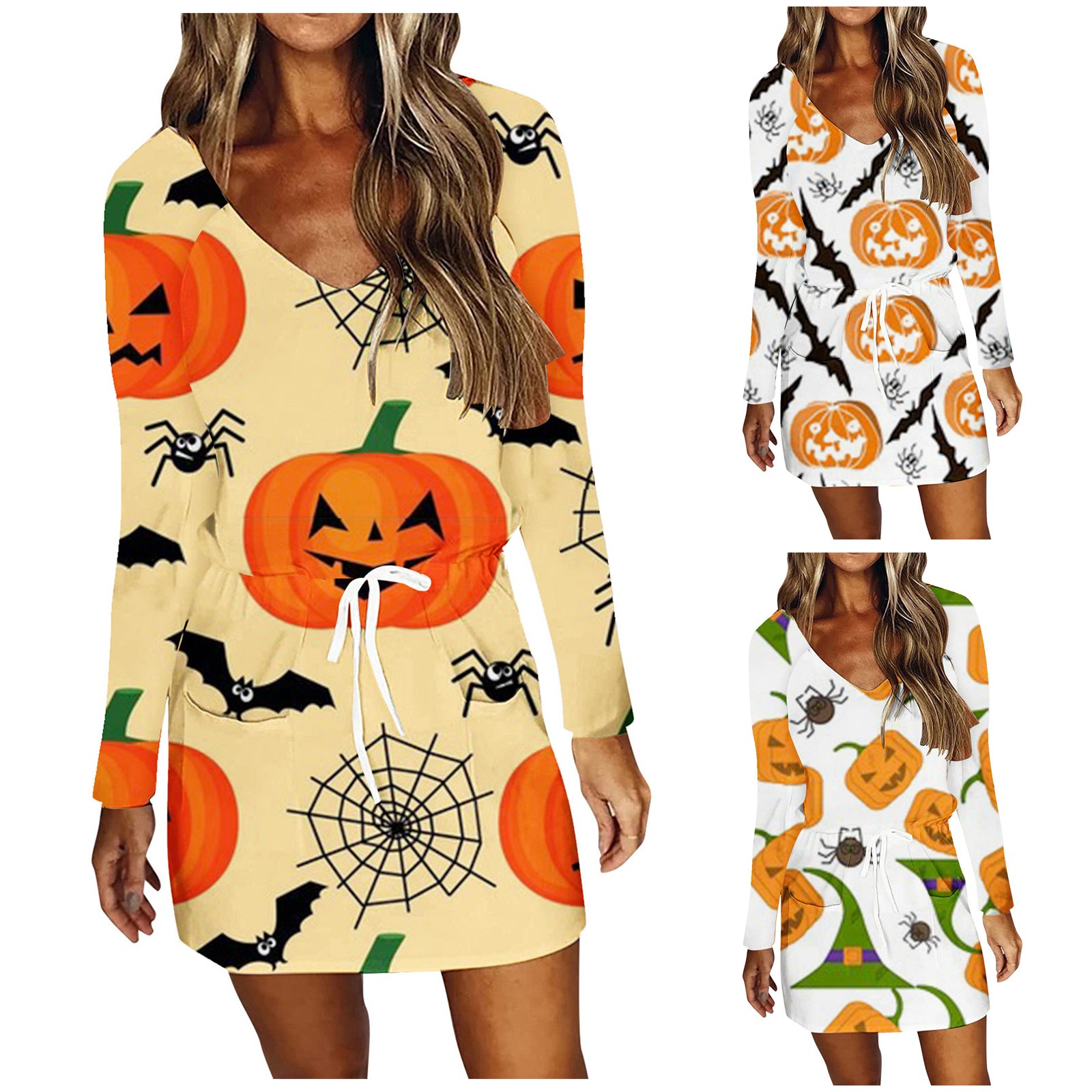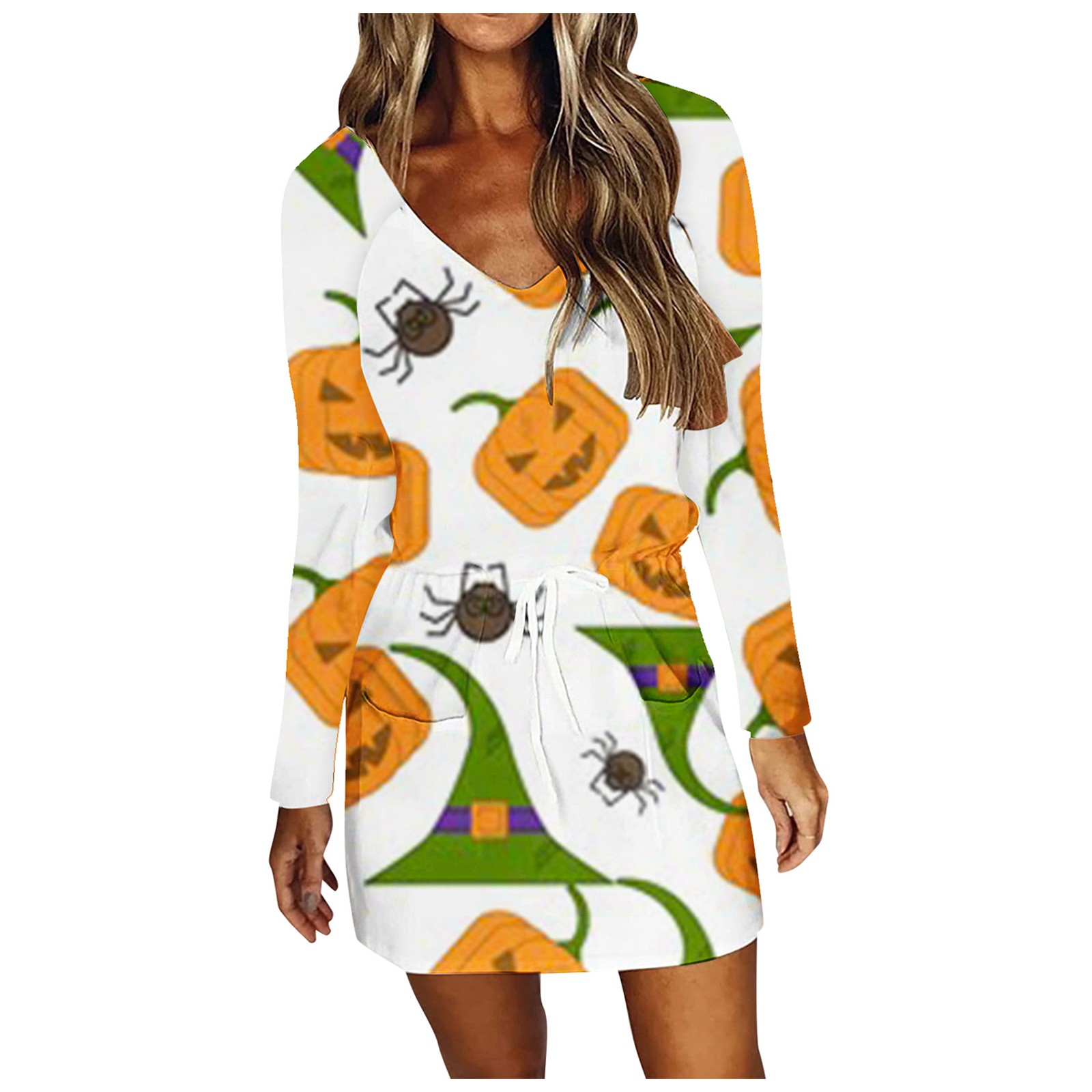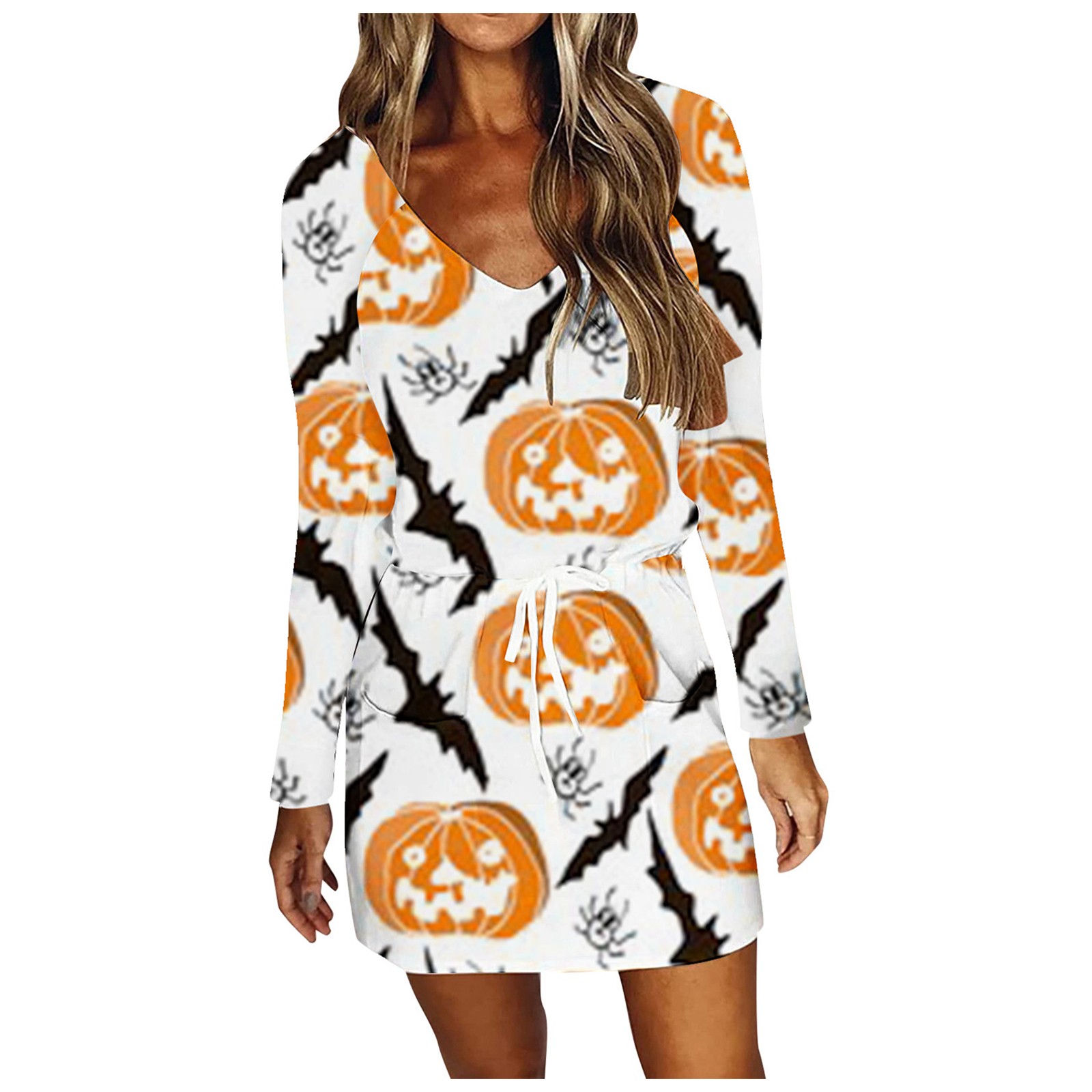 Модное повседневное женское платье на Хэллоуин с v-образным вырезом и длинным рукавом с высокой талией