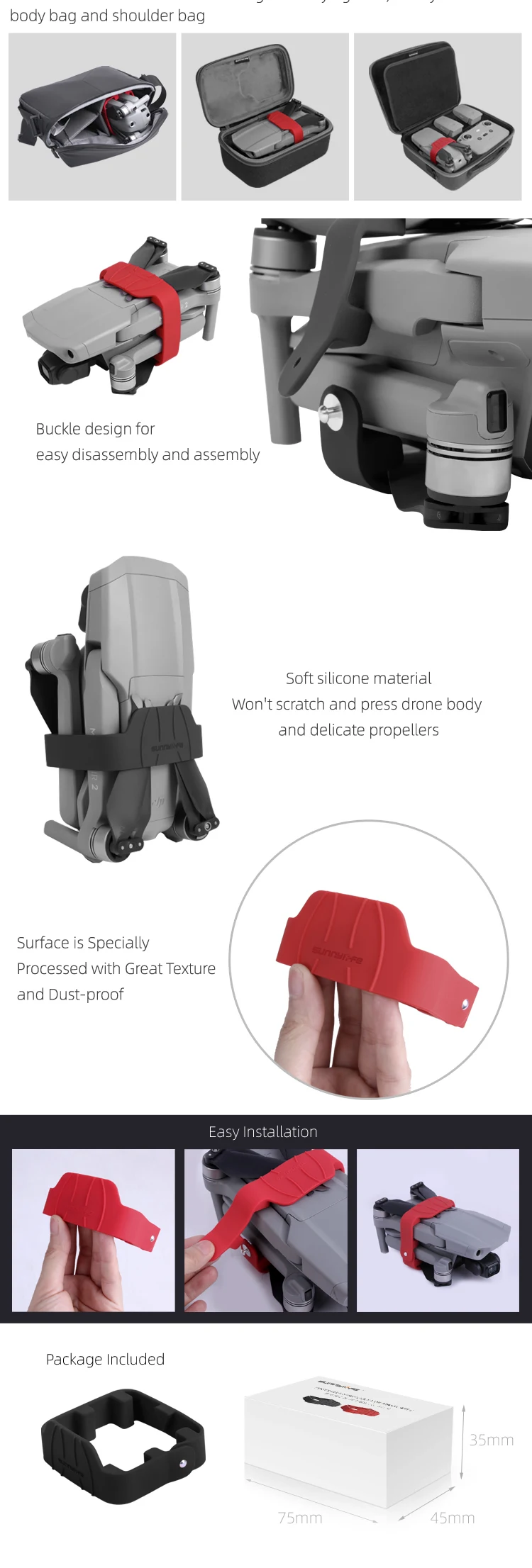 -Фиксация пропеллеров на корпусе дрона для удобной переноски.