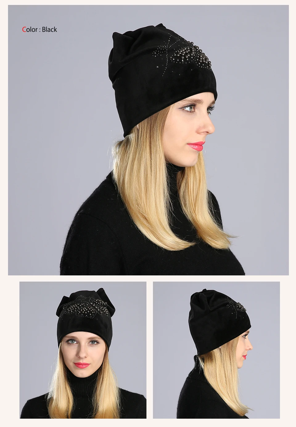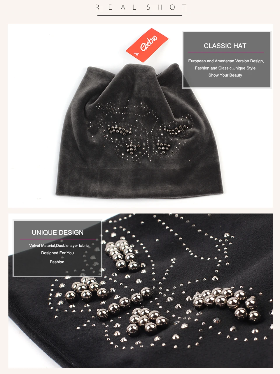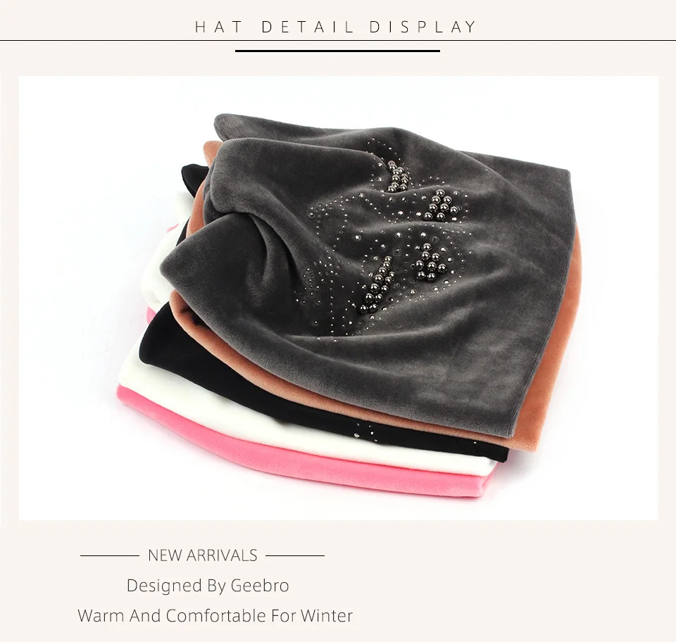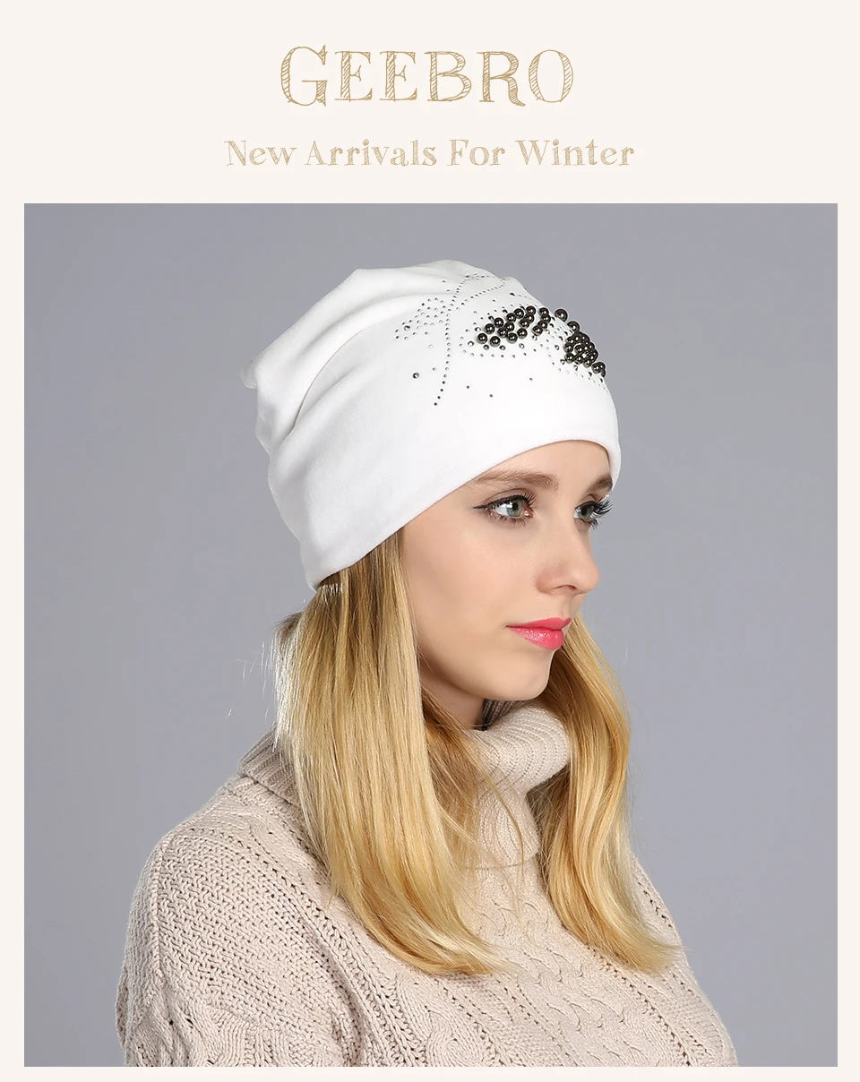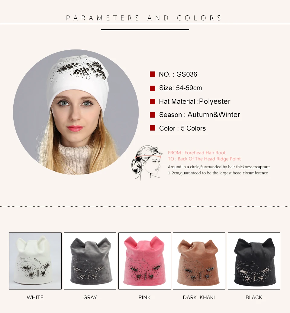 Название продукта:Geebro 2021 зимняя жемчужная бабочка вязаная шапка с узором шапка для женщин теплые бархатные шапки кошачьи шапки с ушами женские шапки Skullcap капот