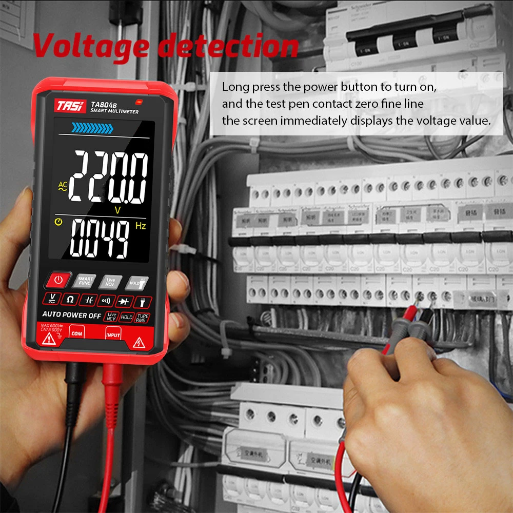 Возможность Тестирования постоянного/переменного напряжения, сопротивления, частоты, включения/выключения цепи и предлагает NCV обнаружения, нейтральной и живой идентификации провода.