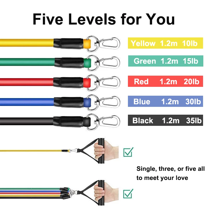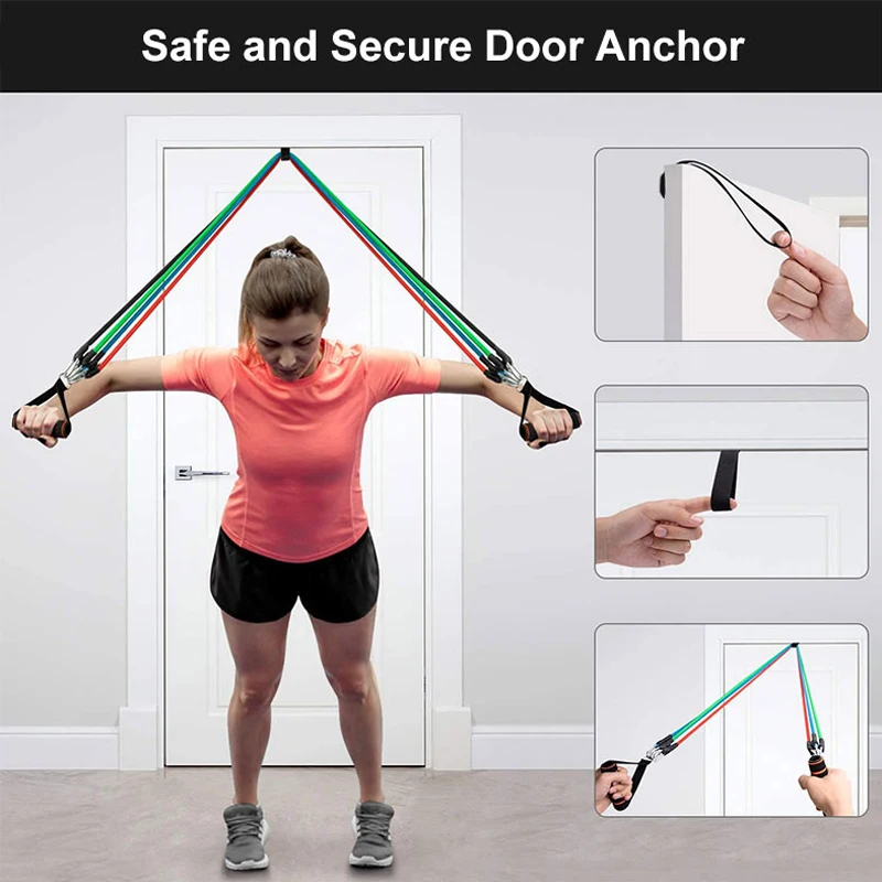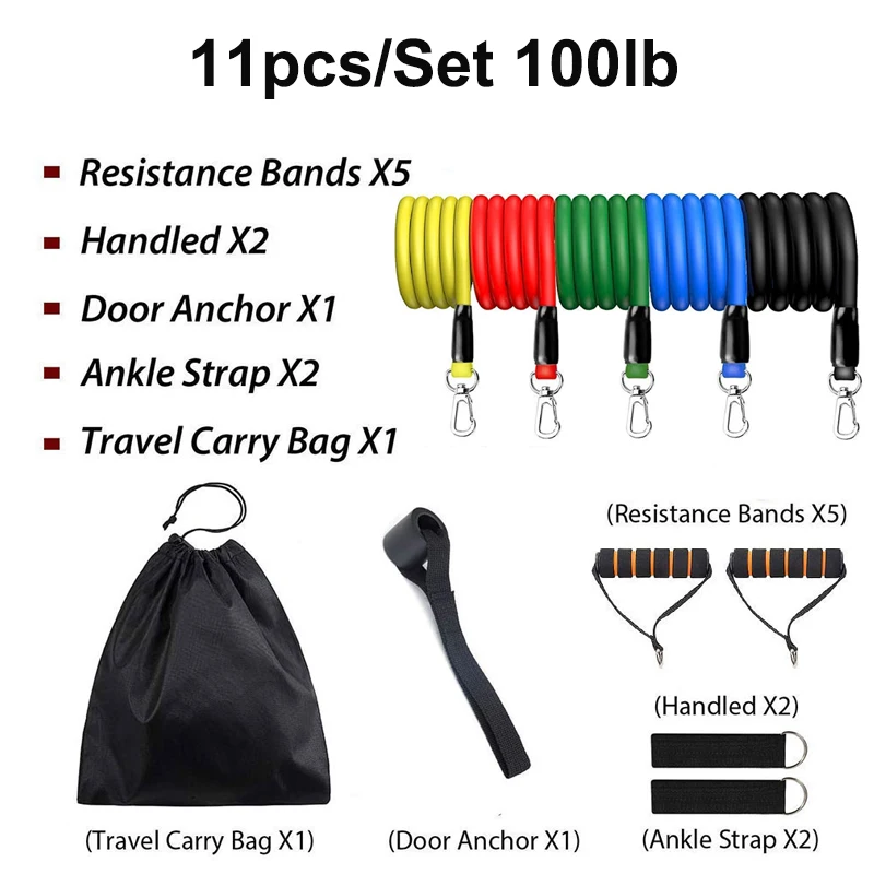 Набор резинок сопротивления, 11 шт., ремешки для упражнений с дверными якорями, ручки, ремешки на лодыжке, веревка для тяги, латексная трубка, для йоги, для домашнего обучения, экспандер