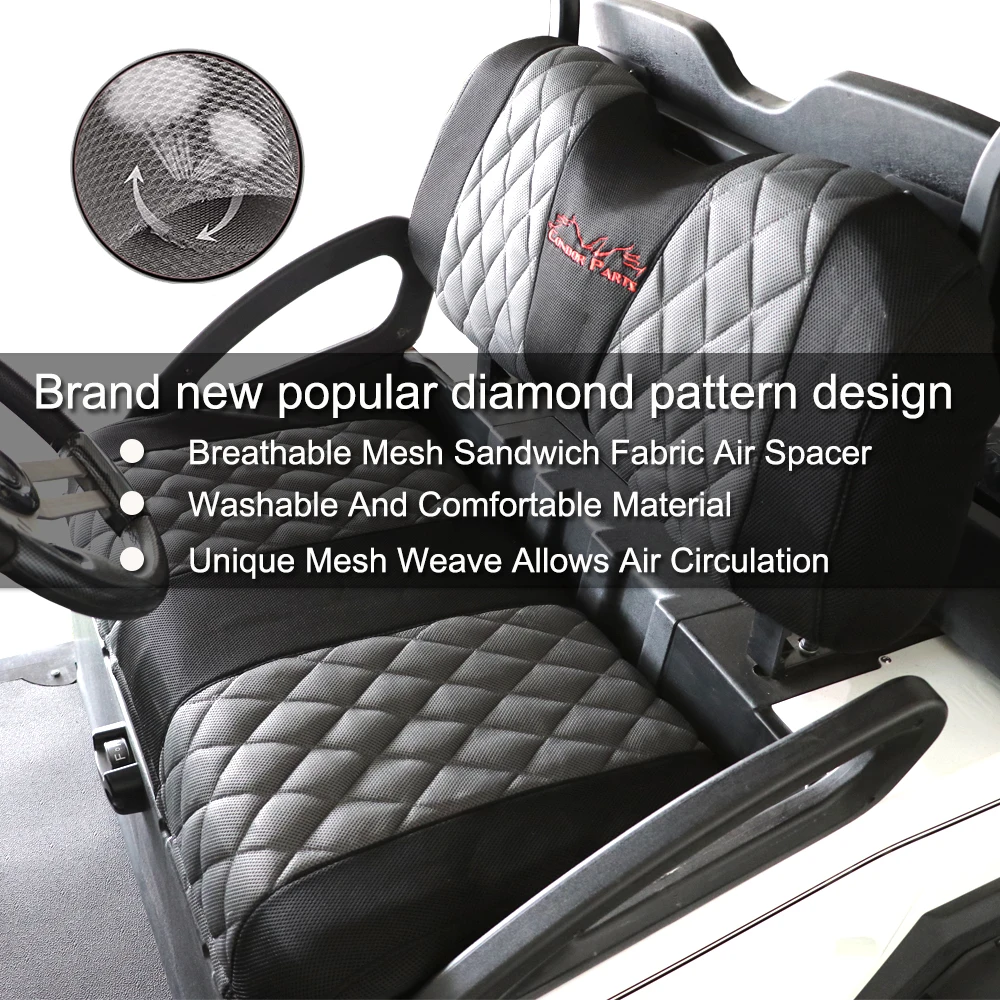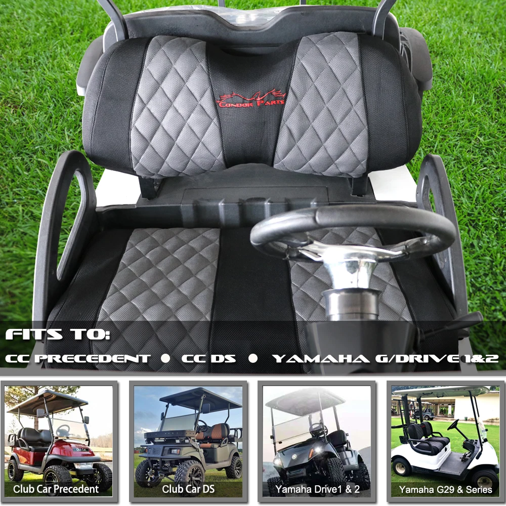 Чехлы для сидений из дышащей моющейся полиэфирной сетки. Обновите и Защитите свои сиденья в гольф-каре и Сэкономьте свои деньги. Недорогое обновление и защита в течение короткого времени для установки без каких-либо инструментов. Супер большое значение, если ваша тележка нуждается в подтяжке лица.