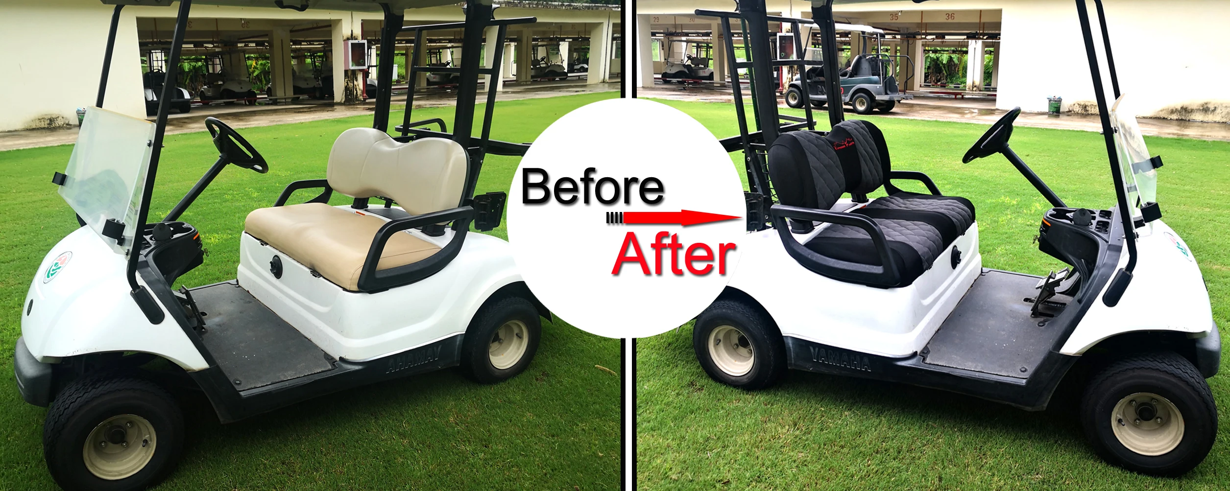 3. Эффект после установки потрясающий: Они сделали 100% разницу в внешности. Издалека они выглядят как настоящие сиденья, делают тележку для гольфа очень стильной. Действительно сделал тележку для гольфа более новой/чистой. Эта крышка сиденья является очень привлекательным обновлением для изношенной оригинальной обивки. Достаточно хорошо подходит для пятнистых и изношенных мягких сидений. Легко моется при загрязнении.