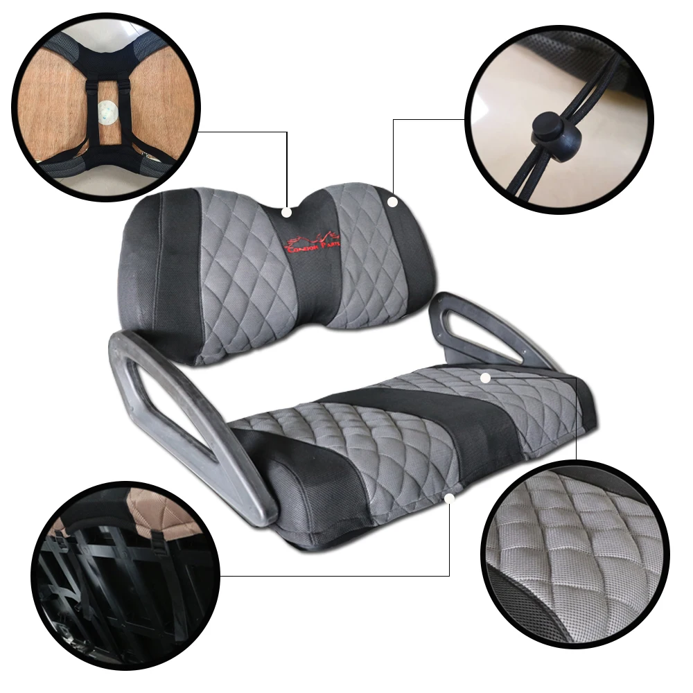 5. Легко для самостоятельной работы: Очень легко установить, как перчатка. Нет необходимости снимать сиденье или заднюю часть или подлокотники на сиденье. Крышка не мешает металлическим петлям, которые удерживают сиденье на месте. Плотно прилегает к внешнему краю с завязками, которые можно затянуть и двумя ремешками, которые бегут по центру. Отлично смотрится и легко устанавливается. В дополнение к клубным автомобилям Yamaha golf carts, он также подходит для Excar, Lvtong, Eagle, Marshell carts. До тех пор, пока Заводские стандартные сиденья для гольф-карт могут быть установлены (за исключением специальных индивидуальных версий). Не только тележка для гольфа может быть установлена до тех пор, пока Размер/форма сиденья аналогична сиденье тележки для гольфа.