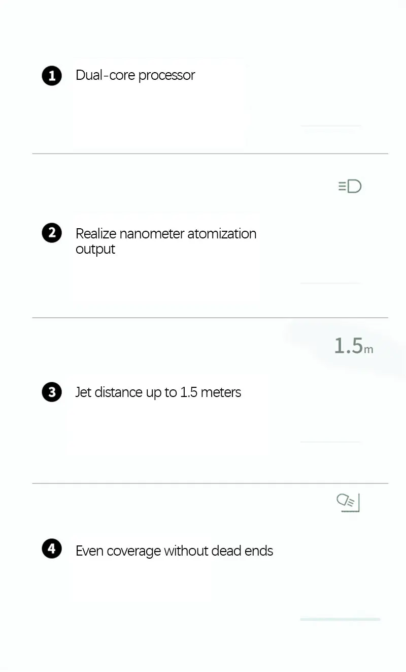 Помимо повседневной санитарии и дезинфекции окружающей среды, он также может заменить увлажнители воздуха в помещении, аппараты для ароматерапии, пополнители воды, устройства для полива и т. д.