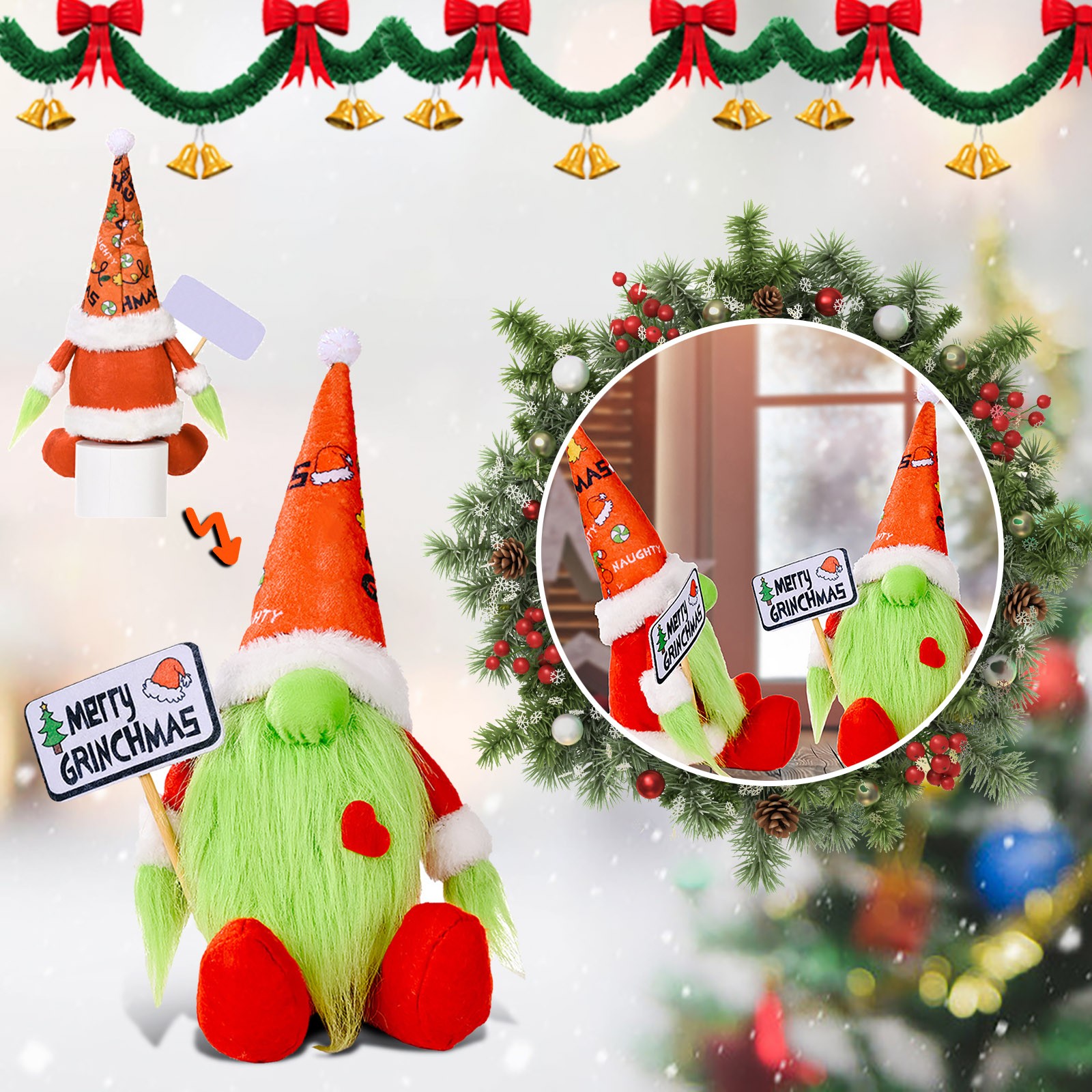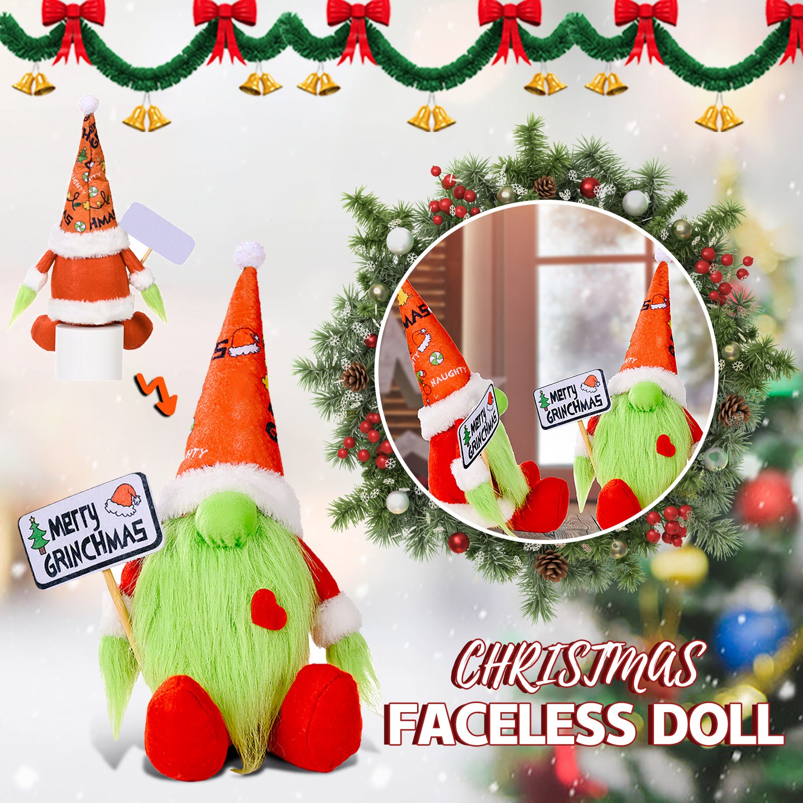 Рождественские зеленые бороды безликая кукла с держателем знак карликовые куклы украшения