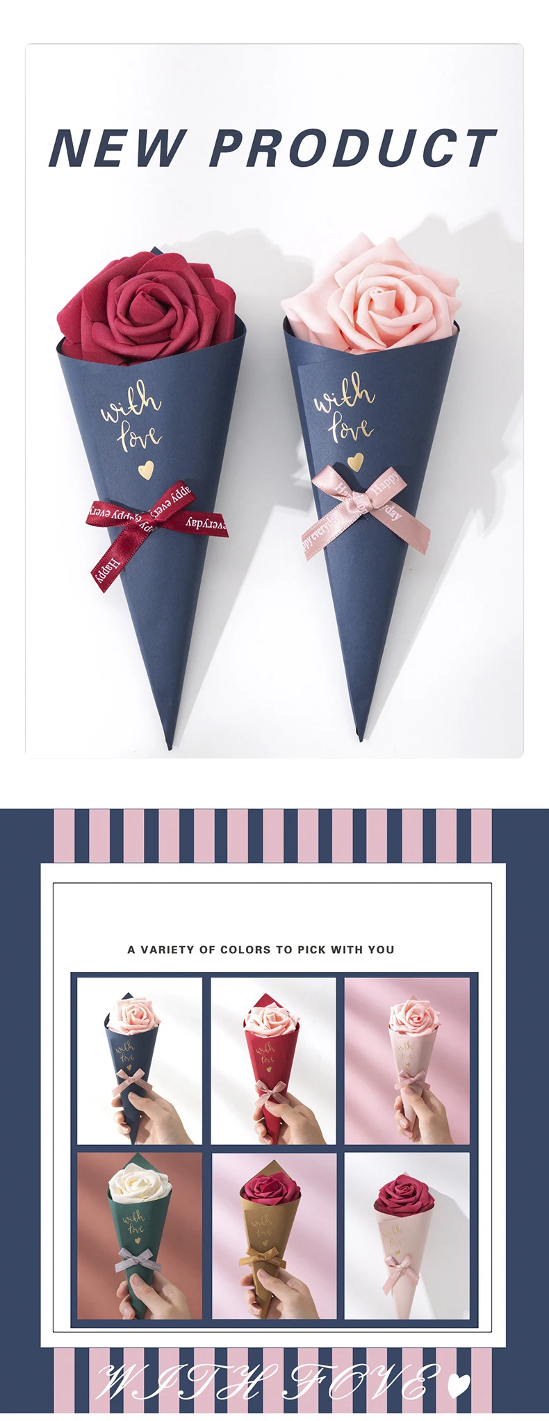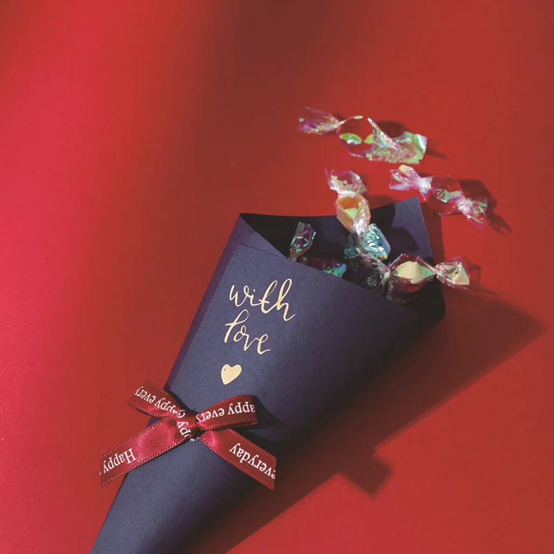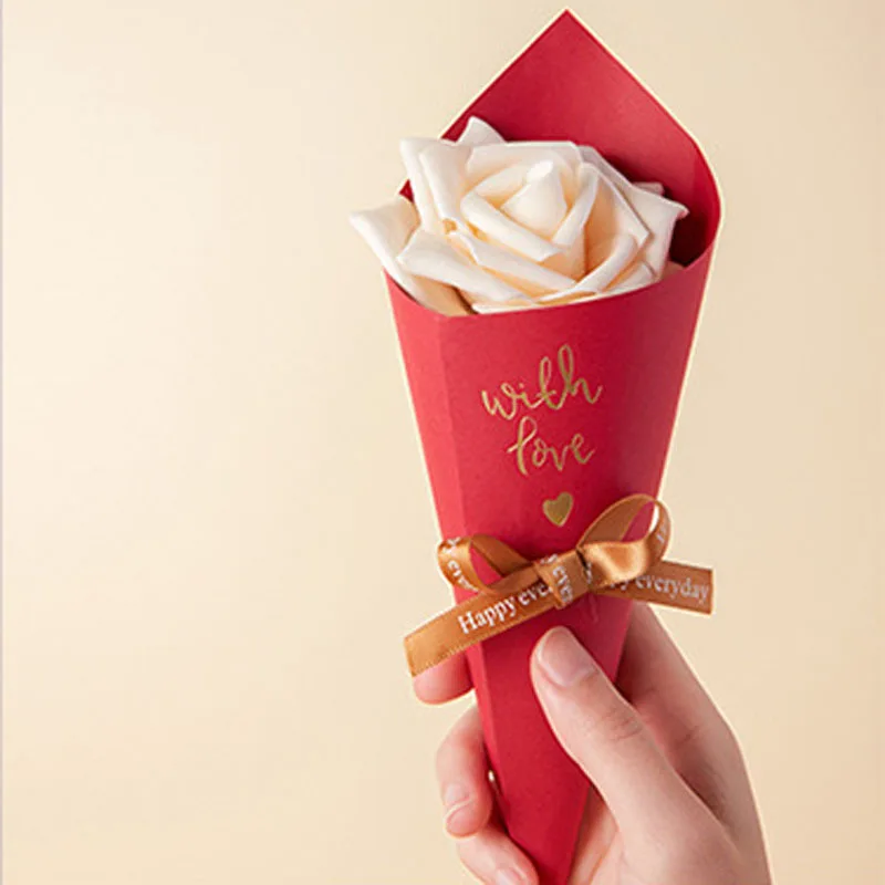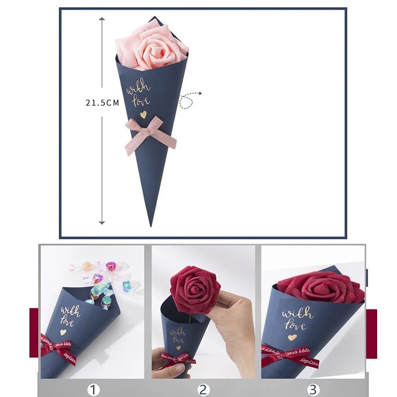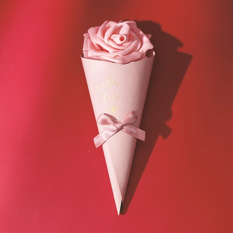 20/50pcs 21cm Creative Candy Box Rose Gift Wrap Wedding Favors For Guests Chocolate Packaging Paper Bag Ribbon Valentine's Day