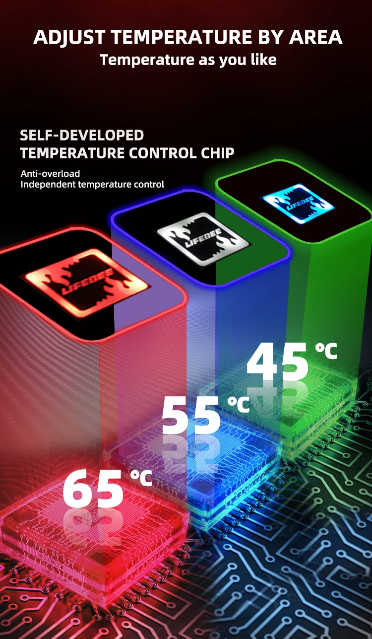 Использование высокопроизводительного композитного нагревательного листа из углеродного волокна, Конструкция низкого давления, не будет генерировать вредных электромагнитных волн, а гибкость нагревательного листа не будет повреждена при складывании или изгибе, высокая эффективность нагрева, высокая прочность; Может излучать инфракрасное Отопление для повышения температуры, Полностью Создайте теплое и комфортное, дышащее и влагопоглощающее ощущение человеческого тела, сохраняя тепло и способствуя кровообращению, не влияя на производительность и внешний вид одежды.