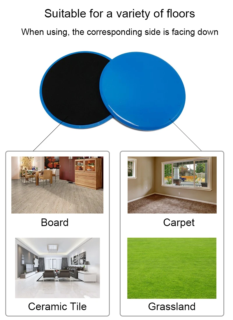 Скользящий диск имеет очень гладкую сторону, что позволяет легко скользить на тренировочном полу. Таким образом, когда тренажер шаги на скользящей пластине, нога или рука могут легко скользить по земле.