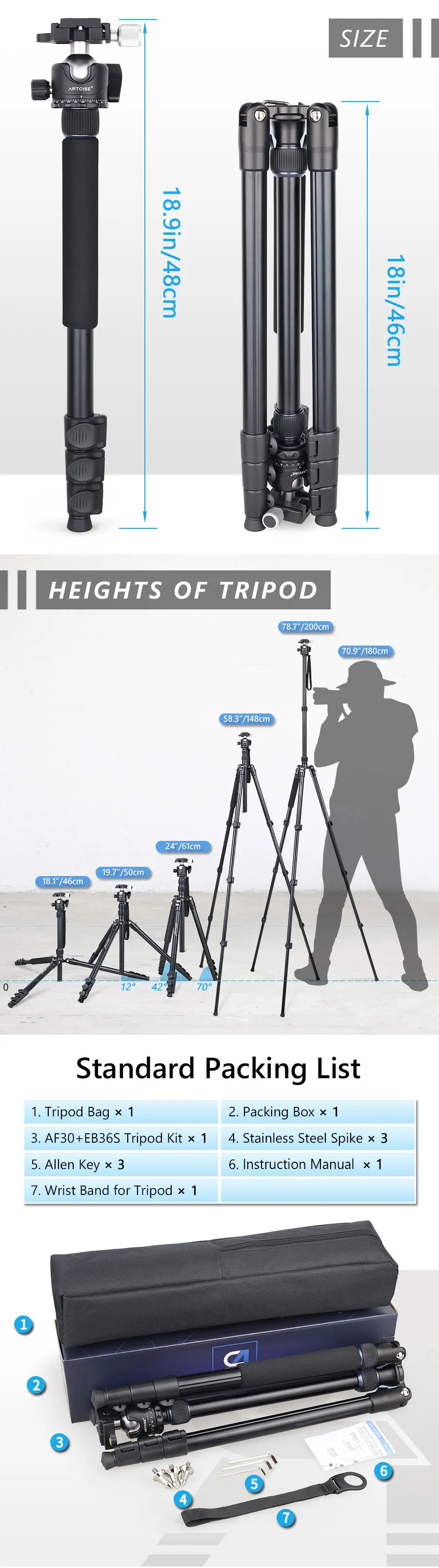 Максимальная высота этого штатива составляет 200 см, он полностью адаптируется к различной высоте пользователей, что позволяет получить идеальные снимки и позволяет создавать ваши фотографии более творчески, чем раньше.