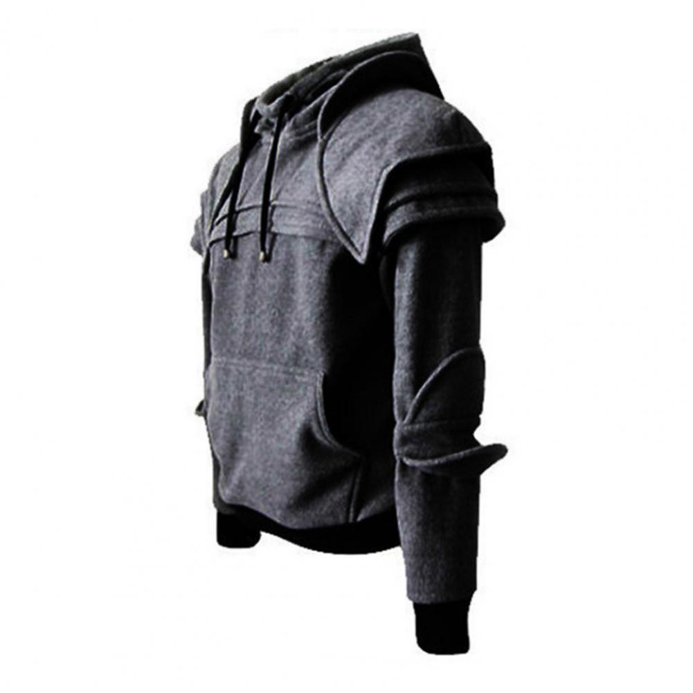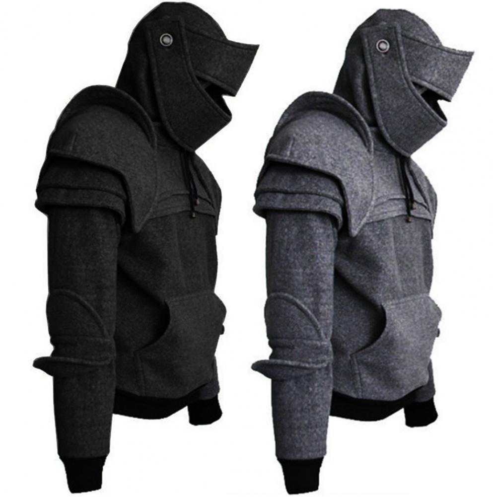 Теплый однотонный пуловер с карманами спереди, худи средневековый стиль, мужская толстовка с капюшоном, одежда на Хэллоуин для улицы