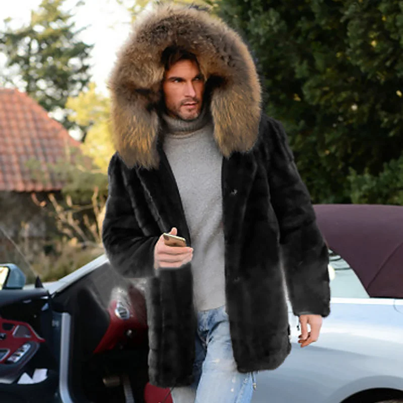 1 х мужское длинное пальто с капюшоном из искусственного меха