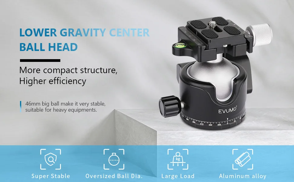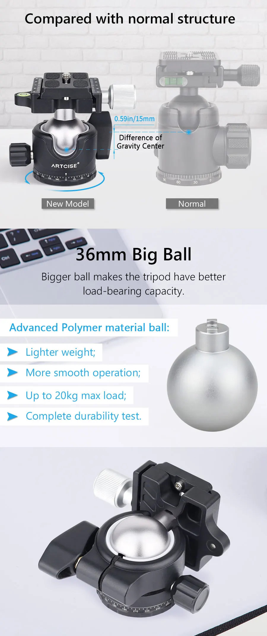 CNC обработанный диаметр большого шара 36 мм, что делает его чрезвычайно стабильным. Его слот безопасности защищает вашу камеру во все времена.