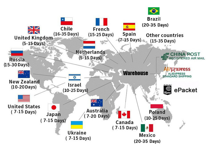 Заказы оставляют наш склад в течение 1-2 рабочих дней. Рабочие дни-с понедельника по субботу, за исключением государственных праздников.