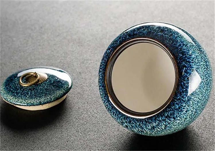 Большая синяя ручная роспись чайная Caddy матовая влагостойкая круглая керамическая банка для чая Caddy с крышкой 18*15 см банка для конфет