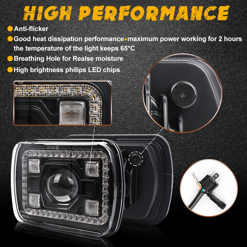 1. Новый дизайн 7x6 дюймовых фар, янтарная сигнальная лампа, Белый DRL, четыре маленькие линзы высокой яркости и основная линза, концентрированный светильник, без бликов, с запатентованным внешним видом.