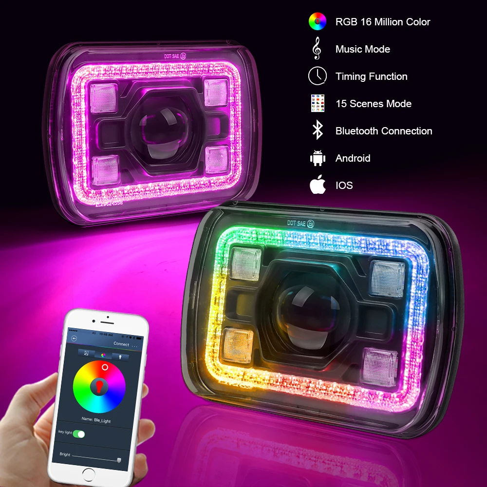 2 шт., 50 Вт, 5x7 дюймов, Квадратный светодиодный фары с дальнего ближнего света, DRL RGB светодиодный налобный фонарь для автомобиля Jeep Wrangler YJ Cherokee XJ