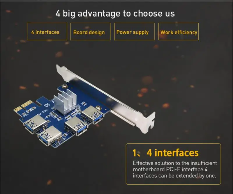 Плата PCI-E к USB riser отличается простой установкой и спроектирован с помощью светодиодный индикатор-светильник, так что вы можете легко узнать статус работы.