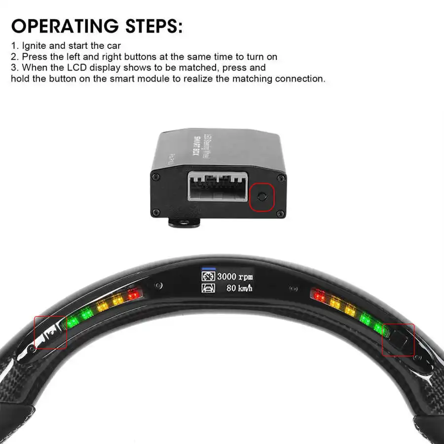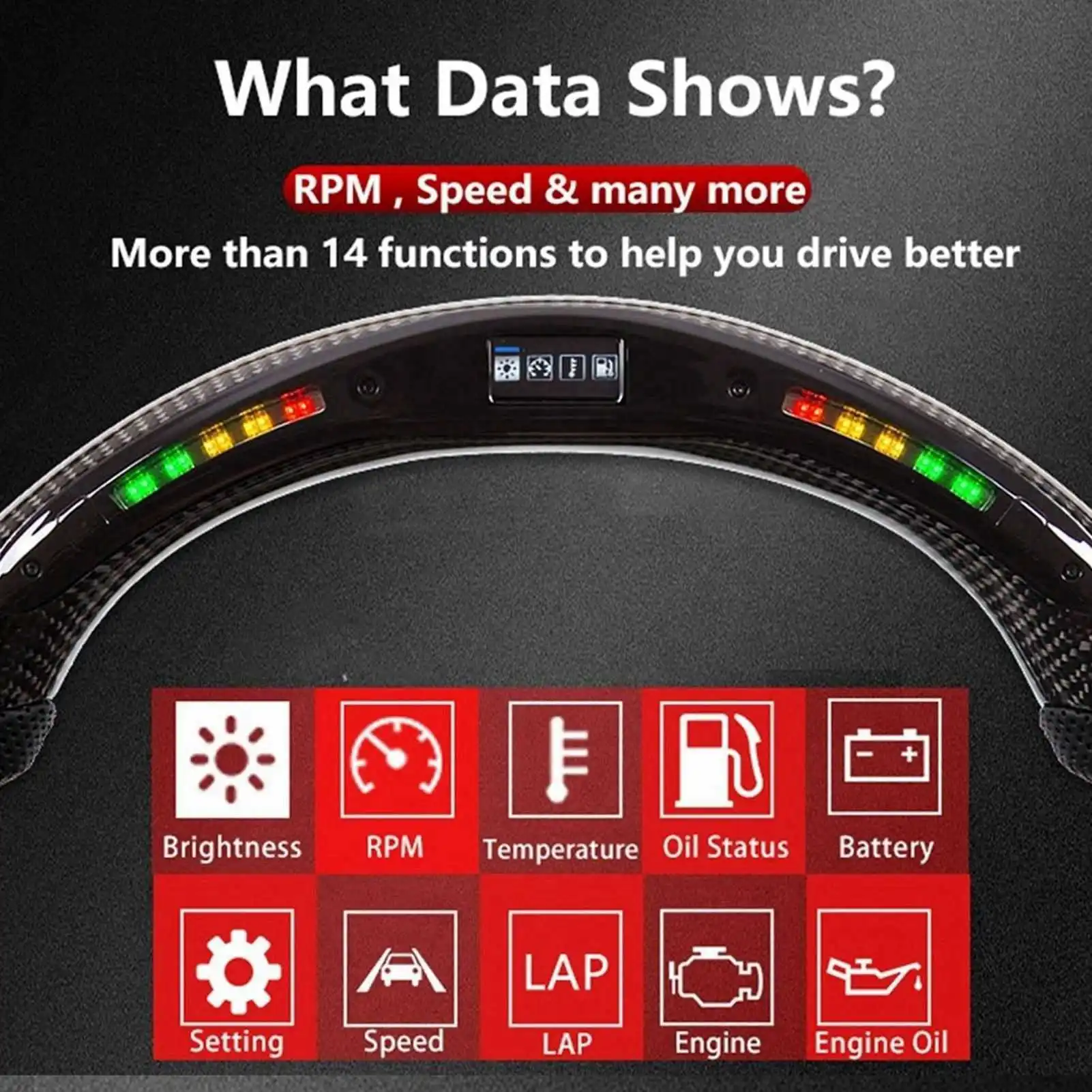1. Включает в себя 5 наборов светодиодный индикатор сдвига с обеих сторон руля. Как и двигателя (об/мин), увеличивается, эти светодиоды постепенно светильник в зеленом цвете. После достижения настраиваемых оборотов в минуту светильник индикатора будет мигать красным, чтобы напомнить вам о необходимости переключения. Может быть отрегулирован от 500 об/мин до 9900 об/мин и имеет регулируемый цвет RGB.
