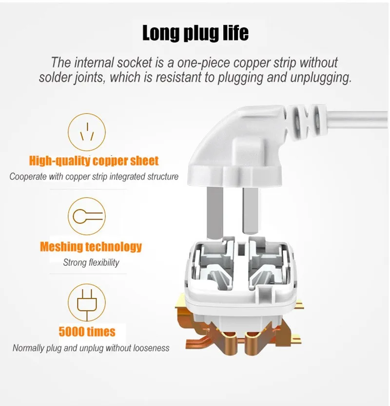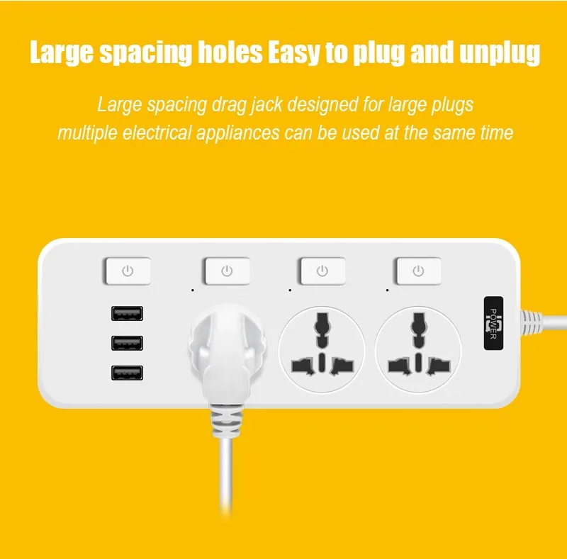 6. [отверстия с большим расстоянием для легкого подключения и отключения] гнезда с большим расстоянием предназначены для больших вилок, несколько электрических приборов могут использоваться одновременно