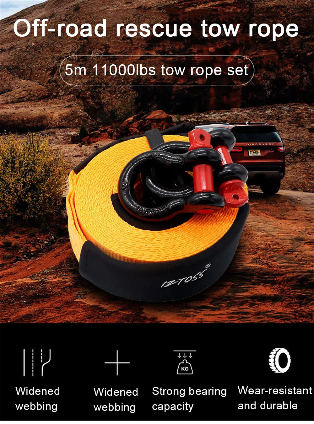Внедорожный спасательный трос безопасности с крюком u-крюк оболочка 11000lbs 5 м сильная тяга двухсторонняя усиленная веревка для ATV UTV