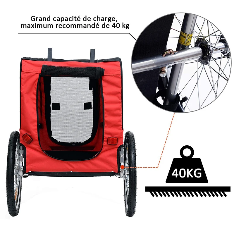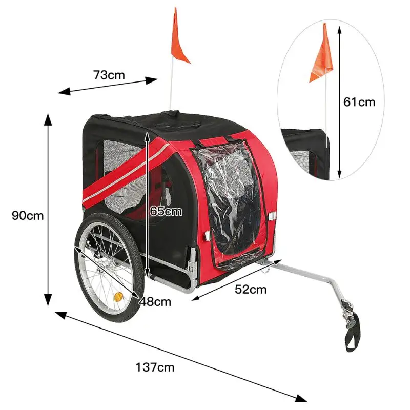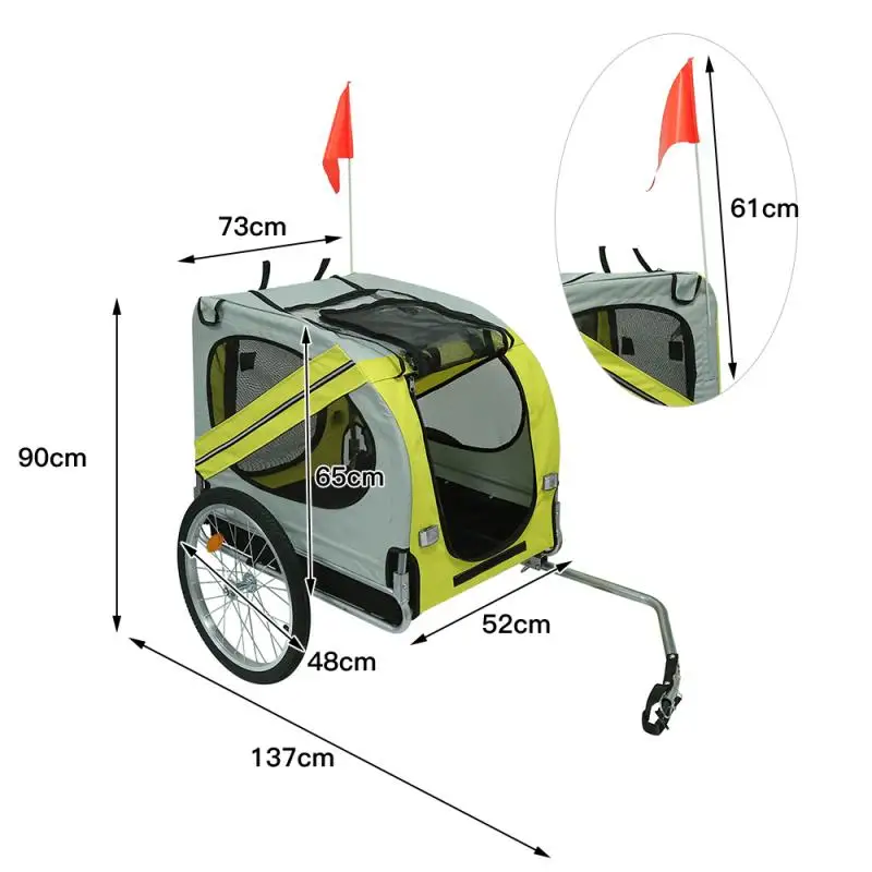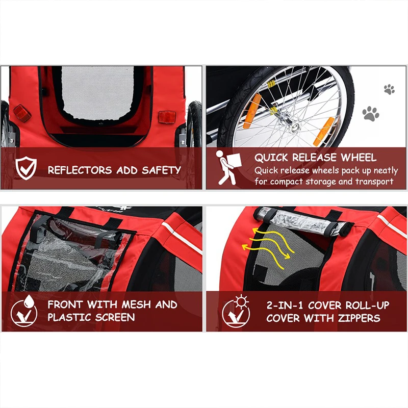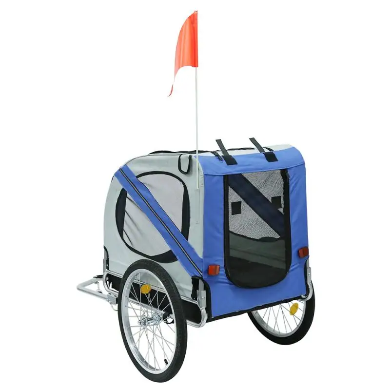 Он имеет прочную стальную раму и изготовлен из ткани Оксфорд, чтобы сделать его водонепроницаемым, прочным и простым в обслуживании; Сетчатые окна с обеих сторон позволяют циркулировать воздух, В то время как передние и задние обеспечивают Двойные входы для большего удобства. И велосипедный прицеп также имеет подвеску для плавного вождения, и каждое колесо и задний отражатель помогут вам сделать вашего питомца видимым для других.