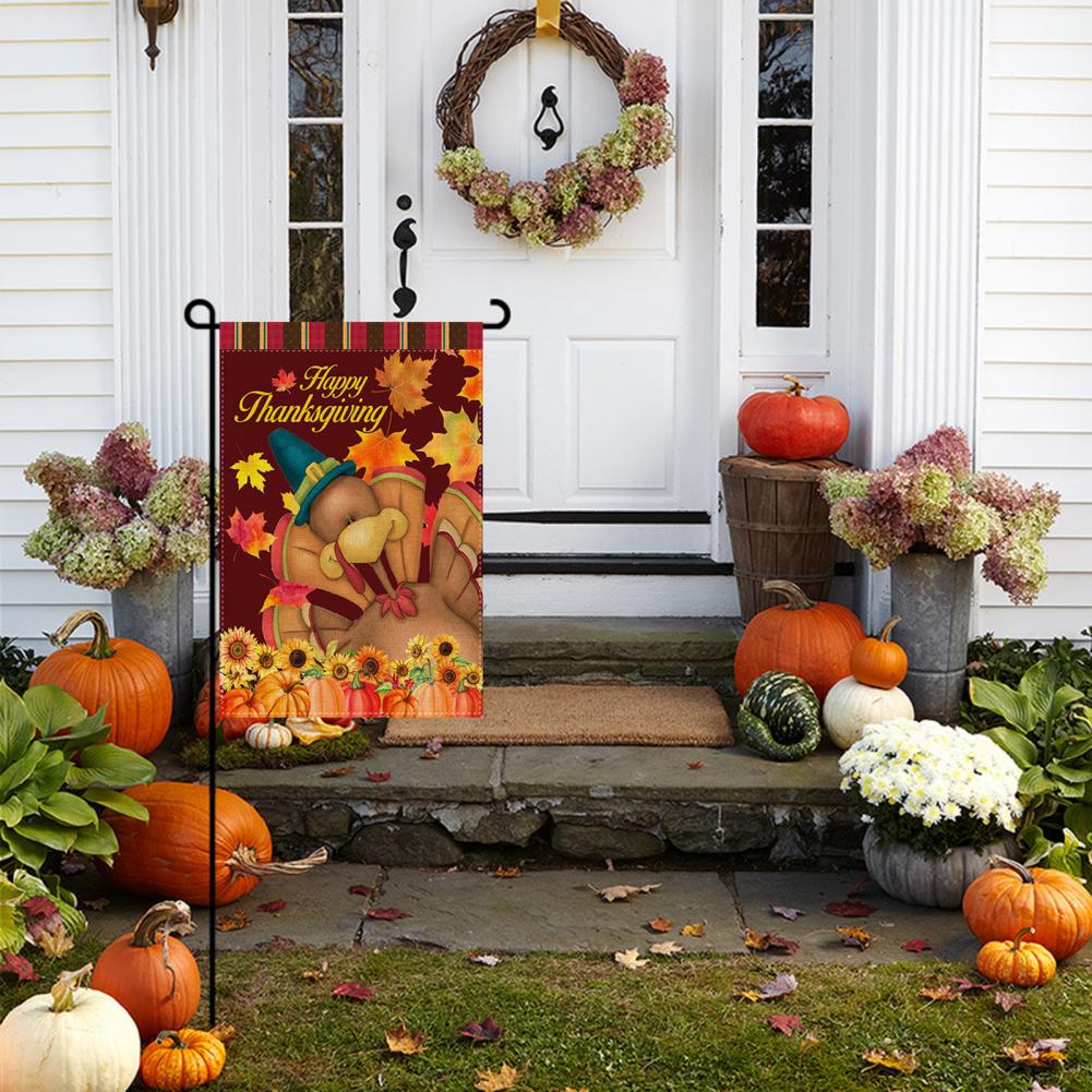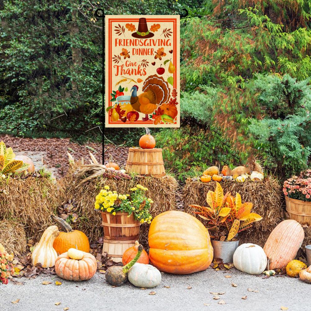 Этот Садовый флаг можно использовать, чтобы нарядить ваш домашний двор для празднования Дня благодарения со своими близкими.
