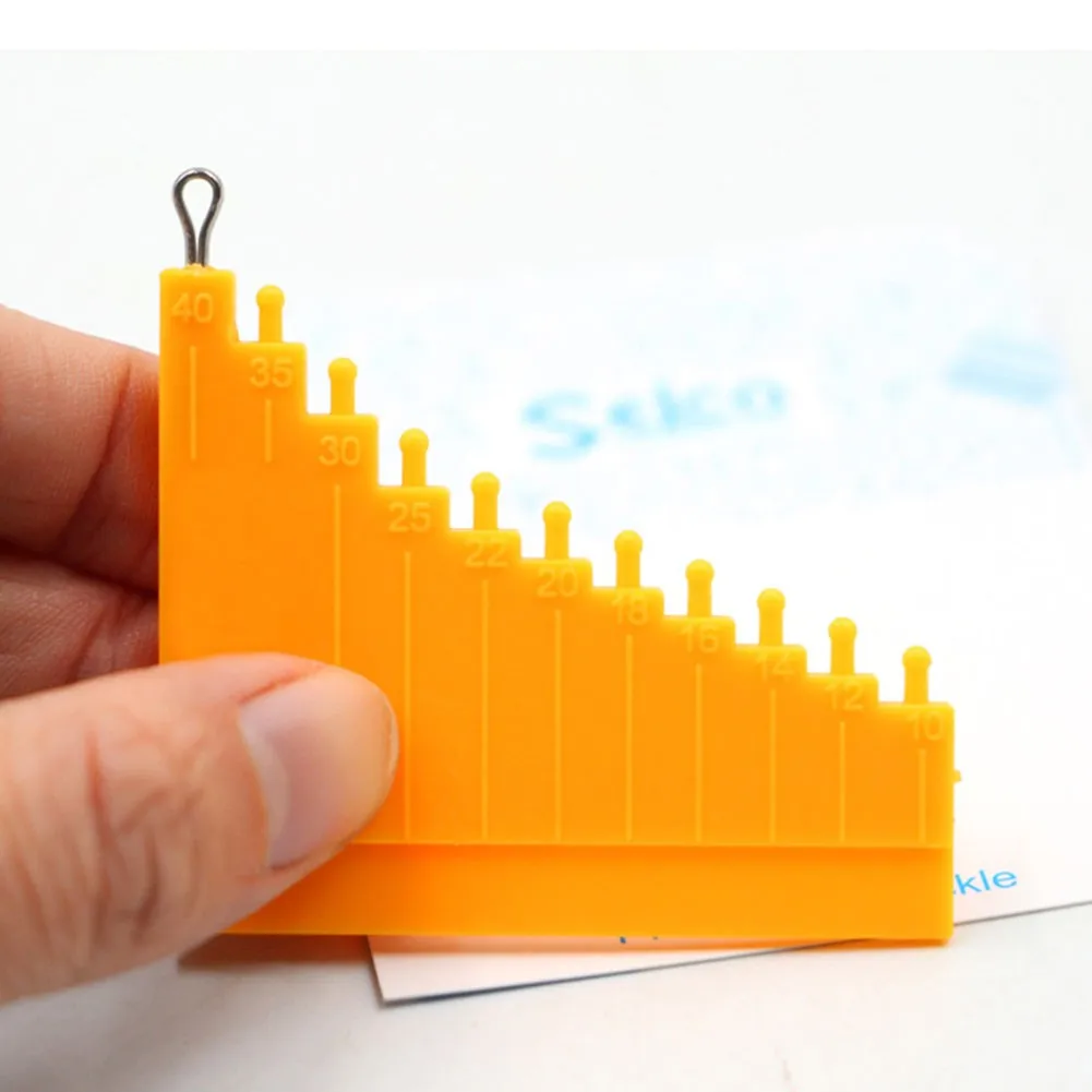 * Он измеряет волоски от 10 мм до 40 мм, легко помещается в коробку для снастей и измерения печатаются с обеих сторон для удобства использования как для правого, так и для левшей рыболовов.